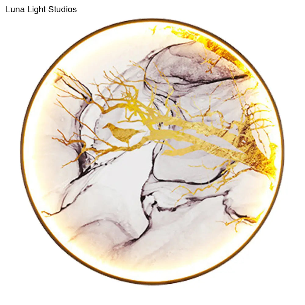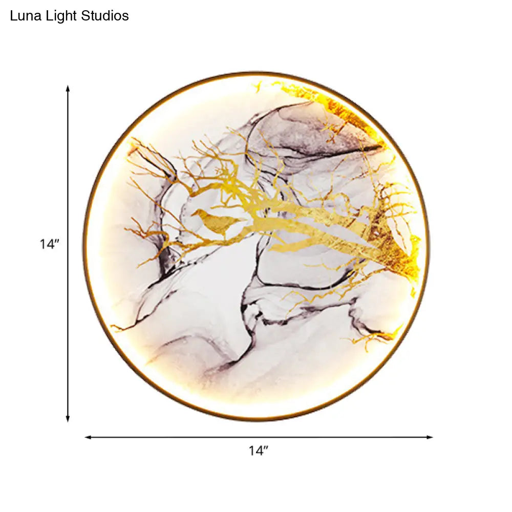 مصباح حائط دائري من الألومنيوم بتصميم آسيوي، مزود بإضاءة LED ذهبية، بنقشة طيور وأغصان عارية، سيضفي جوًا راقيًا على أي مساحة. بفضل تصميمه الفريد، وإضاءته الدافئة، وقوته طويلة الأمد، يُعد هذا المصباح الحائطي الخيار الأمثل، ويضيف لمسةً من الفخامة إلى أي غرفة.