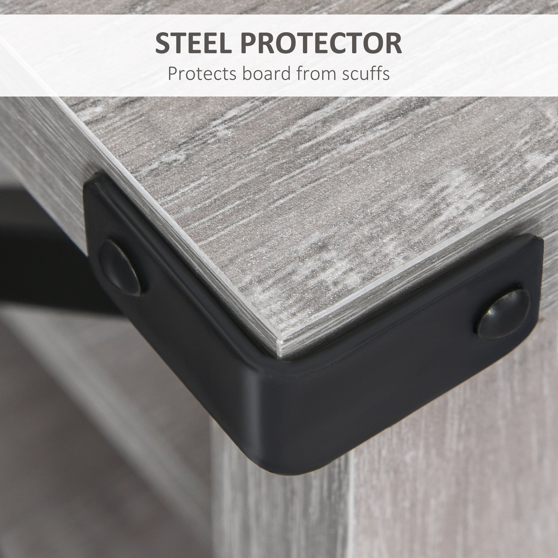 With simple design, compact structure and industrial style decor, you have no reason to refuse this TV stand with storage. HOMCOM 3-Tier TV bench is convenient with a wide tabletop, 2 storage shelves and 2 back cable management holes. This living room TV stand is beautiful with its natural color combination, while crafted from a solid metal frame to ensure high stability in your daily entertainment. If you have no idea which product will be best for you, the simplest is the best. Features: - Industrial modern entertainment center featuring white oak surface and black steel frame - P2 grade particle/ MDF board ensures its high stability, and with side X-Bar for added support - 2 back cable management holes will be helpful to keep the tabletop tidy and clean - It comes with 2 storage shelves and a big tabletop for storage - Suitable for 60'' TV - Required simple assembly Specification: - Color: White Oak - Material: Particleboard, MDF Board, Steel - Overall Dimensions: 47.25" W x 15.25" D x 19.75" H - Storage Shelf Size: 43" W x 15" D x 7.25" H (upper), 46.25" W x 15" D x 7" H (lower) - Weight Capacity: 110lbs(total), 22lbs(shelf) Package Includes: 1 x TV stand 1 x manual Save space in your living room while still being able to place your TV and other electronics with this TV corner stand from HOMCOM. There are two drawers, and an open compartment, great for your storage needs and keeping your space organized. The trapezoidal structure allows it to be placed in the corner, making good use of oft-unused space. Enjoy watching TV and keeping organized with this media center console from HOMCOM. Features: - Suitable for TVs up to 50 inches - Featuring two drawers and an open compartment - Trapezoidal structure allows it to be placed in the corner - Made of MDF for long-lasting use - Top compartment has an open back for easy organizing of cables - Assembly required Specification: - Color: White, Natural - Material: MDF - Overall Dimension: 37.5" L x 17.75" W x 20.5" H - Compartment Dimension: 32.75"L x 11.5"W x 6" H - Drawer Inner Dimension: 13.75" L x 10.5" W x 3.25" H - Weight Capacity: 7 lbs (Drawer), 11 lbs (compartment), 88 lbs (total) - Note: Suitable for TVs up to 50" - Item Label: 839-049 Package Includes: - 1 x TV Stand - 1 x Manual Upgrade your living room and entertainment area with this HOMCOM TV cabinet. The pure white makes the unit a beautiful focal in bedroom, living room, or other places. Cupboards with doors and drawers provide ample storage space. Depending on your preference and needs, they can be used to keep a game controller, cable box, CDs, and video games. Get organized, and control clutter with this HOMCOM media stand. Features: - Modern appearance makes this media center perfectly fit any living room decorations - Spacious desktop can display TVs up to 60" and decorations - Two cabinets, a drawer, and a shelf provide ample storage space - Cable hole design for concealed wire management - Glass doors allow you to see your belongings more clearly - Assembly required Specification: - Color: White - Material: MDF, Glass - Overall Dimensions: 55" W x 15.75" D x 17.75" H - Cupboard Size: 17" W x 14" D x 14" H (each) - Open Shelf Size: 17" W x 14.75" D x 8" H - Drawer Dimensions: 15" W x 11.5" D x 4" H - Cable Hole Size: Φ 2.25" - Weight Capacity: 110 lbs. (total), 11 lbs. (shelf), 7 lbs. (drawer) - Item Label: 839-223 Package Includes: - 1 x TV Stand - 1 x Manual.