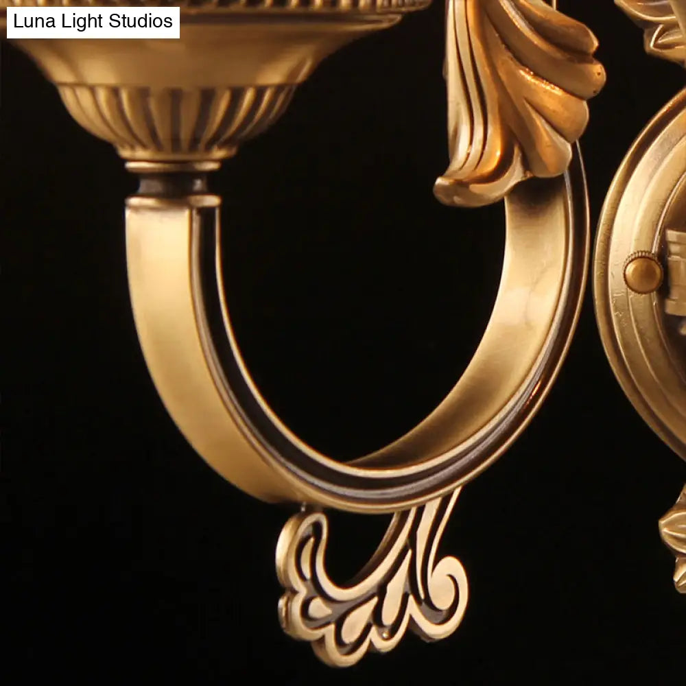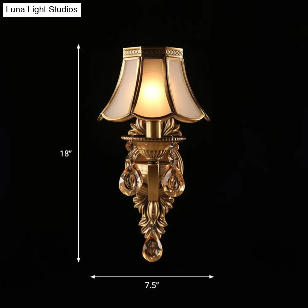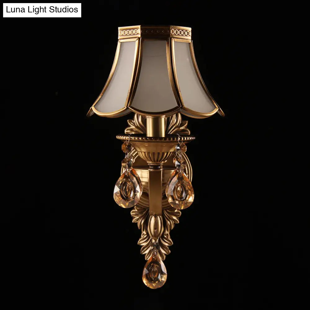 مصباح حائط عتيق بظل صدفي - إضاءة حائطية أحادية الرأس من الزجاج غير الشفاف مع لمسات من الكريستال باللون النحاسي