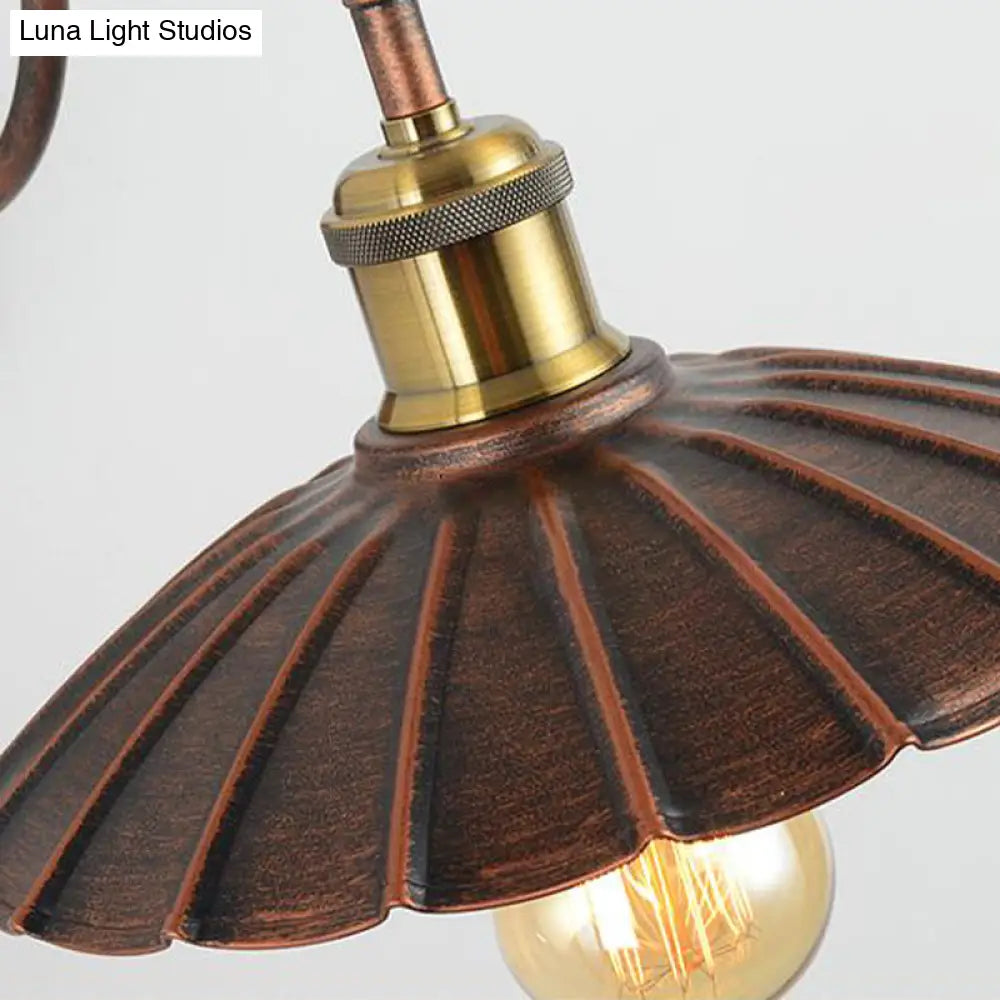 مصباح حائط معدني على الطراز العتيق بحافة صدفية، ولمسة نهائية من النحاس العتيق، وذراع على شكل عنق الإوزة - وحدة إضاءة بمصباح واحد