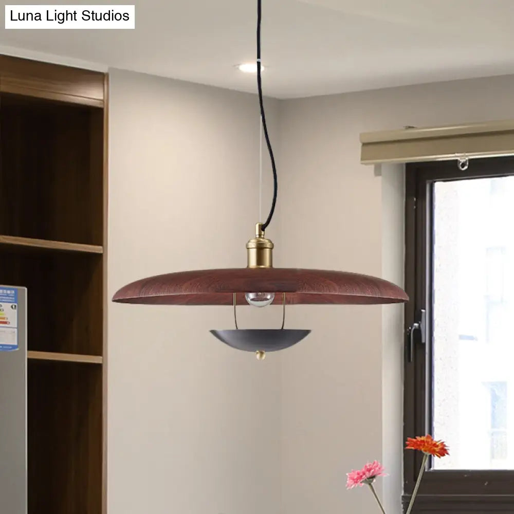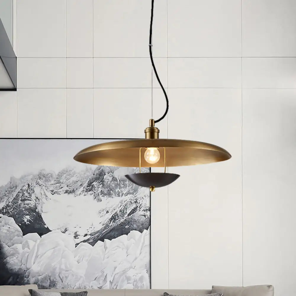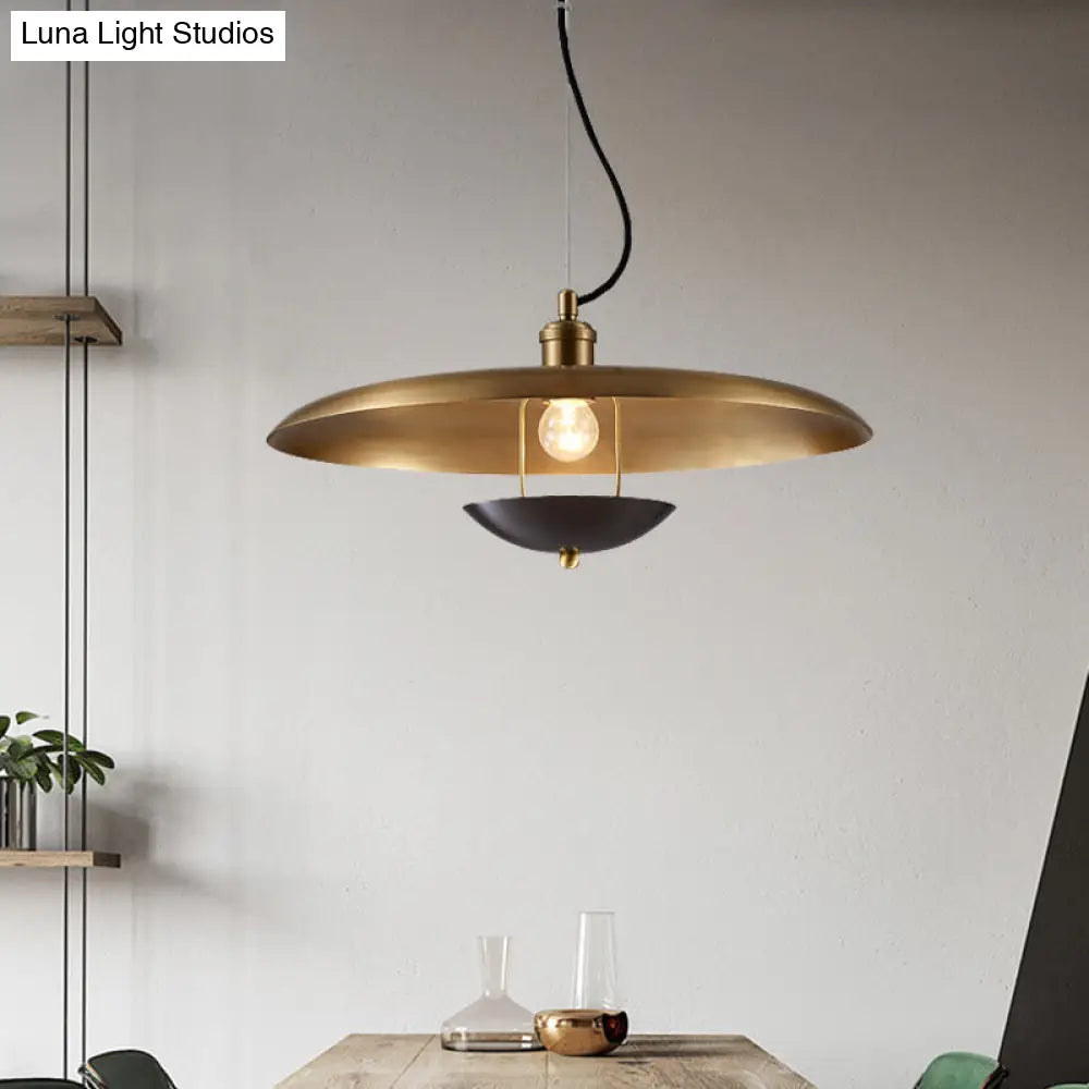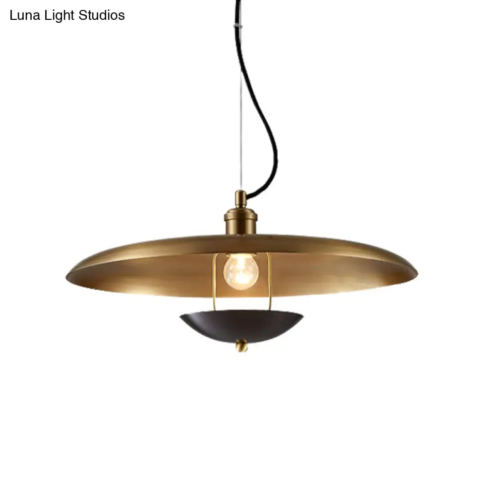 مصباح معلق مسطح عتيق - مصباح سقف معدني بمصباح واحد باللون الأحمر/الذهبي مع سلك قابل للتعديل