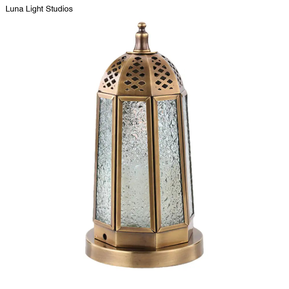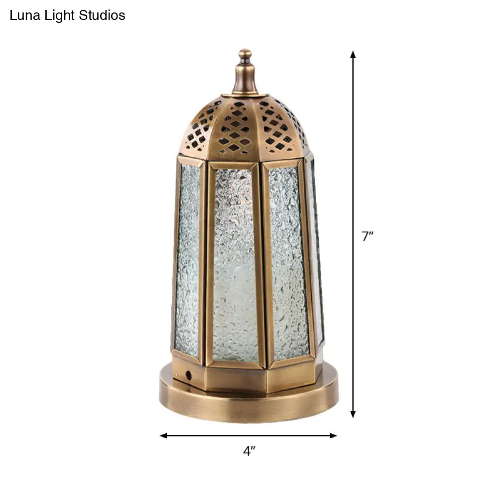 مصباح مكتبي عتيق من طراز Tower - مصباح طاولة ليلية من الزجاج الشفاف المحبب برأس واحد بلمسة نهائية من النحاس
