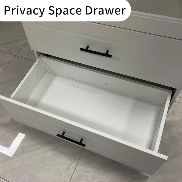 Armoire Wardrobe Closet With 2 Glass Closet Doors, 71" High Bedroom Wardrobe Closet With 2 Closet Drawers Cabinet Storage Wardrobe With Hanging Rod For Bedroom,Wooden Armoires And Wardrobes