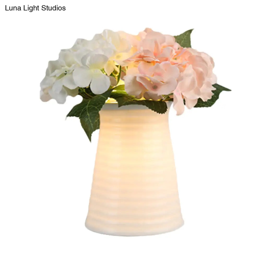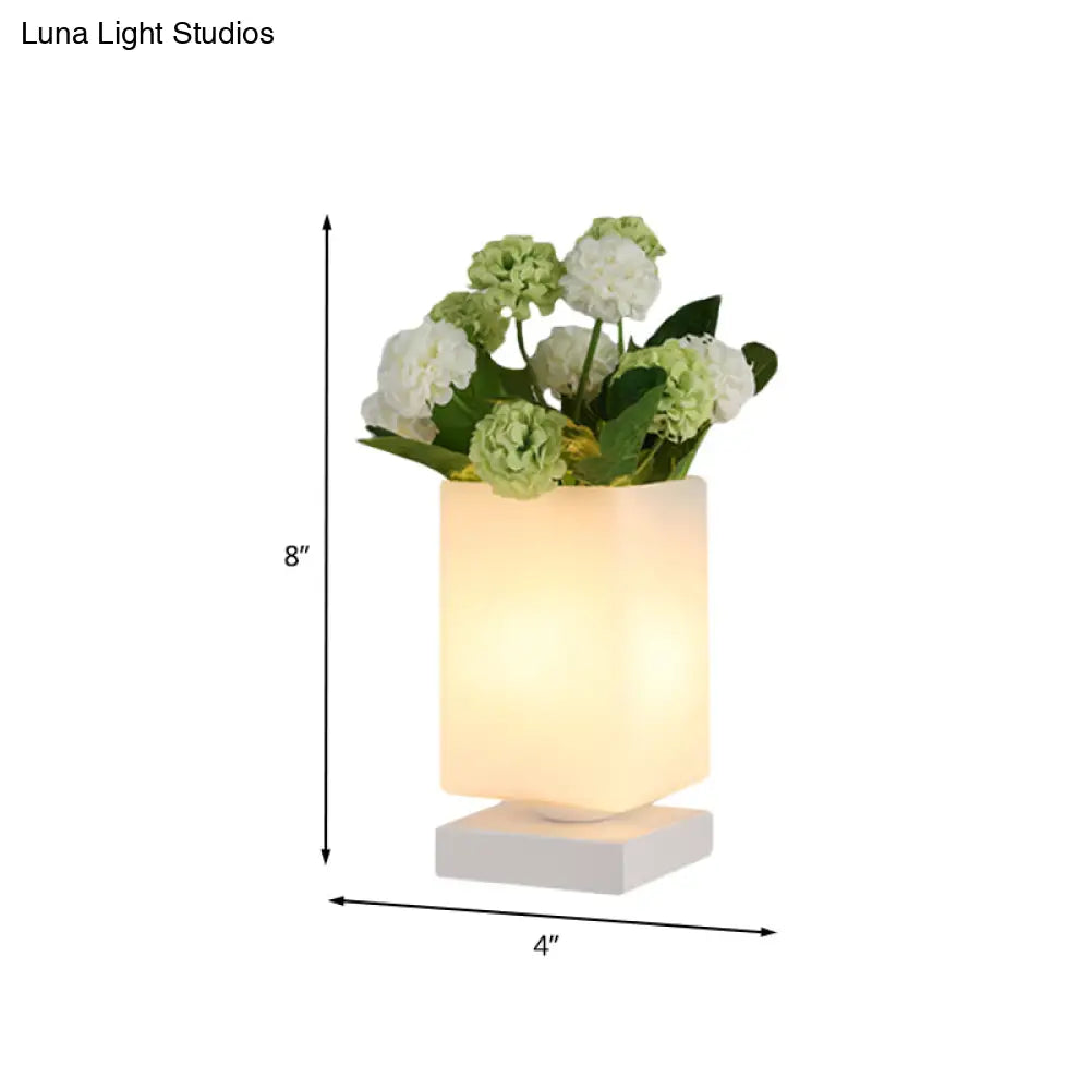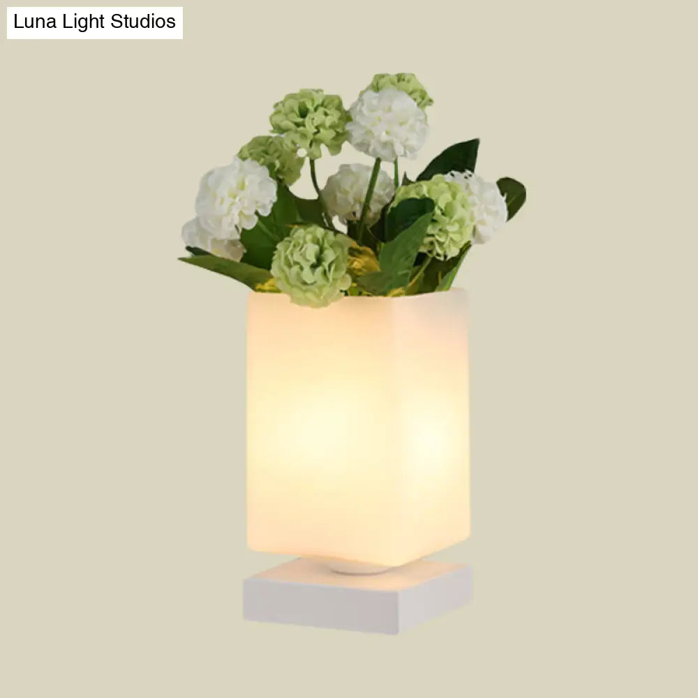 مصباح ليلي LED زجاجي أبيض مزهر: إضاءة طاولة جانبية مخروطية/مستطيلة على طراز آرت ديكو لغرفة النوم