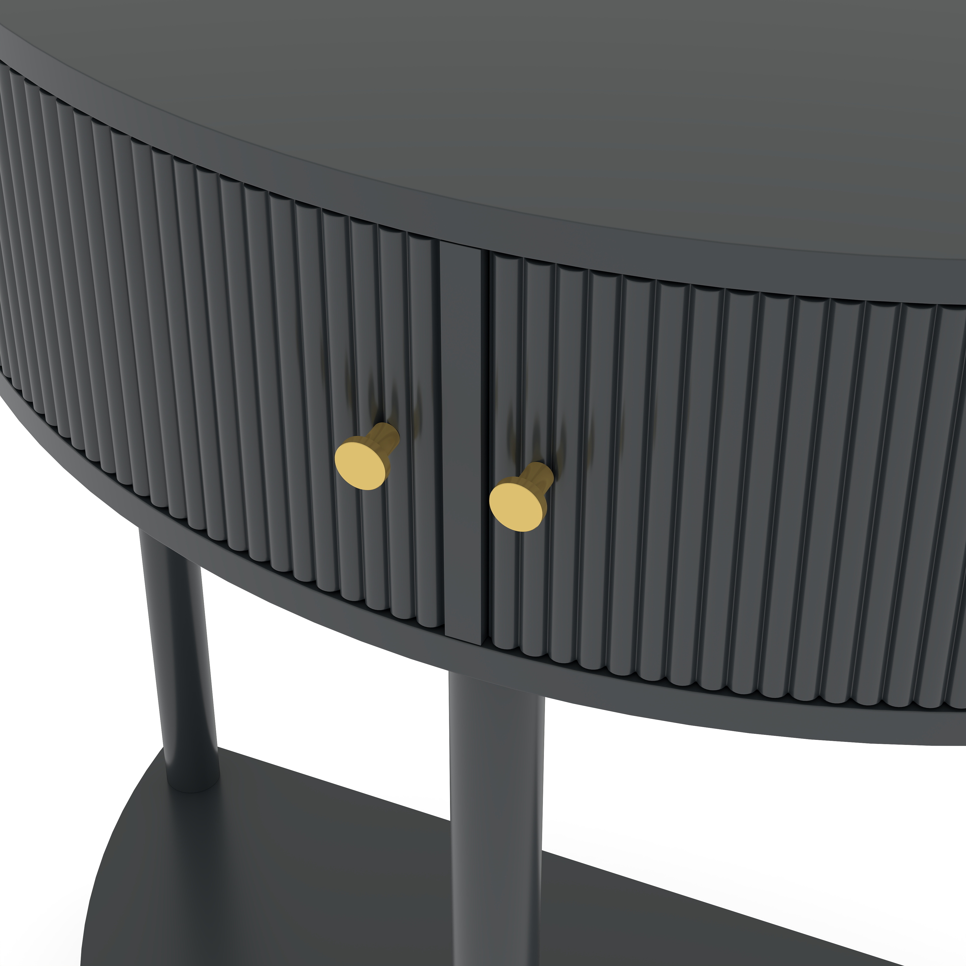 Artisan-Crafted Wave-Pattern Demi-Lune Console Table With Dark Gray Finish,Unique Half Moon Design End Table With 2 Storage Drawers And Bottom Shelf For Living Room, Bedroom, Study, Hallway