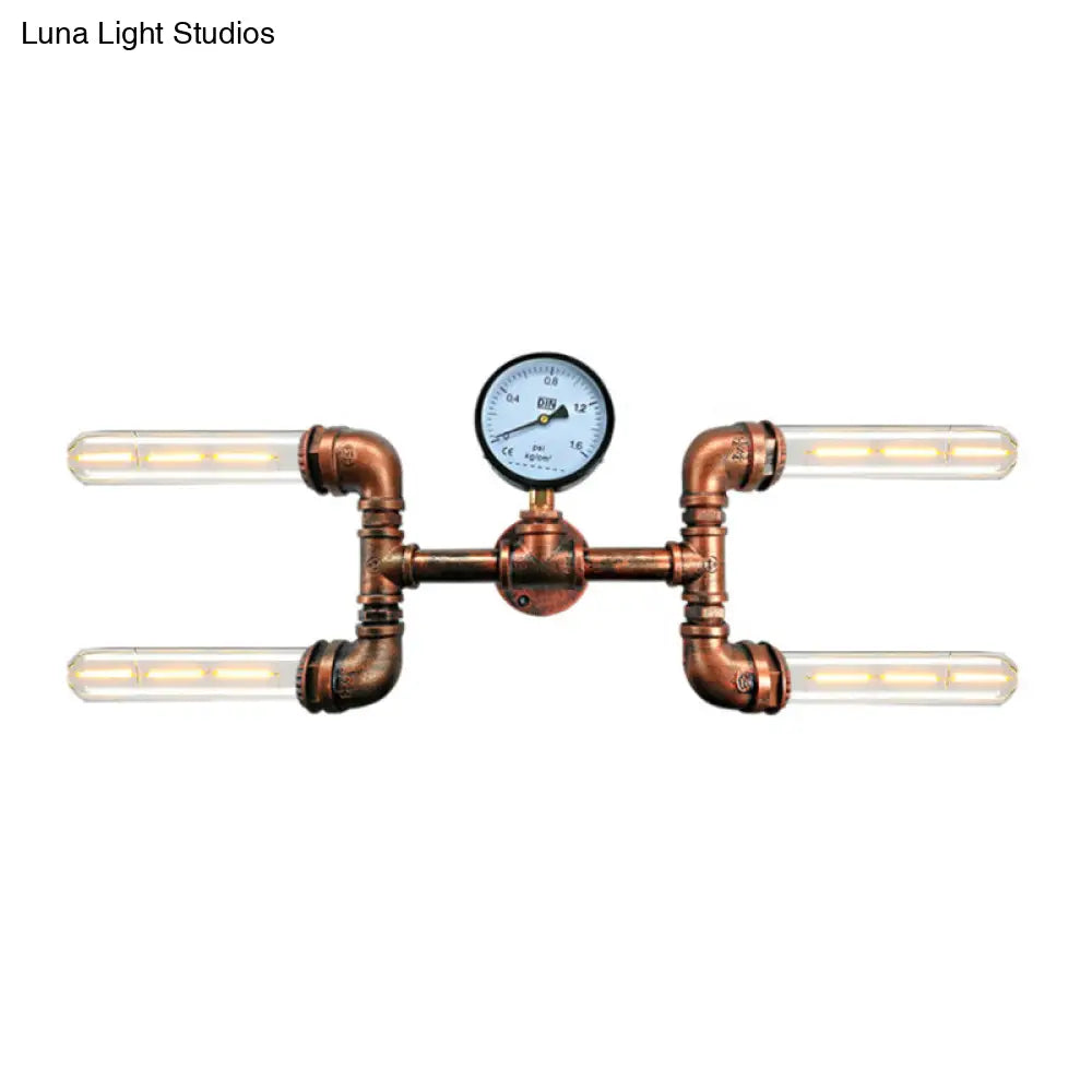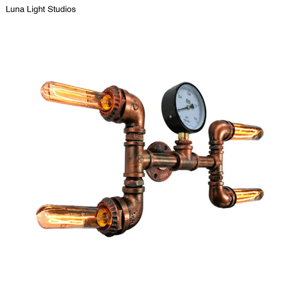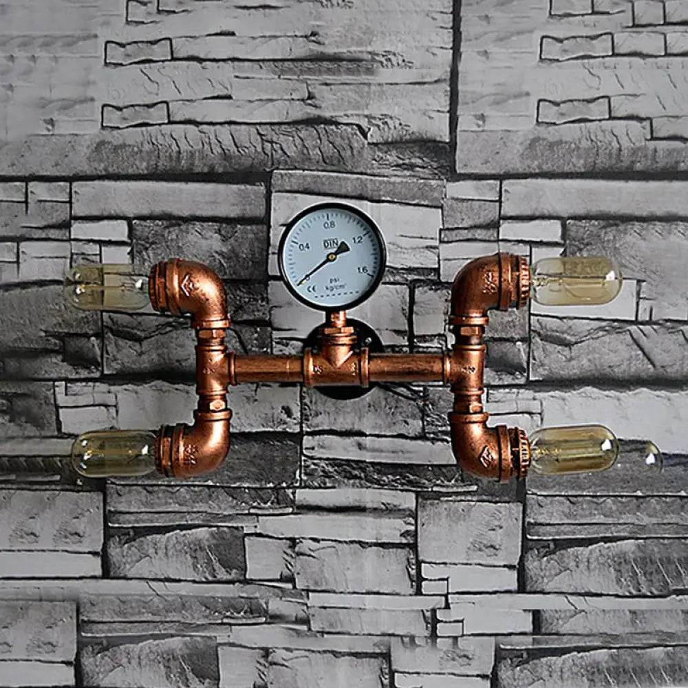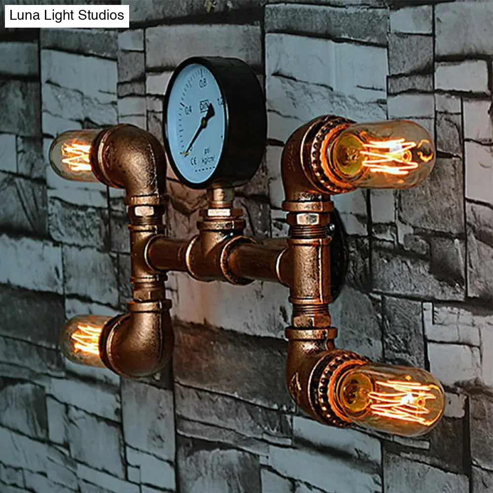 مصباح حائط ريفي من الحديد بمصباح عارٍ مع ديكور قياس - حامل نحاسي بأربعة مصابيح لغرفة الطعام