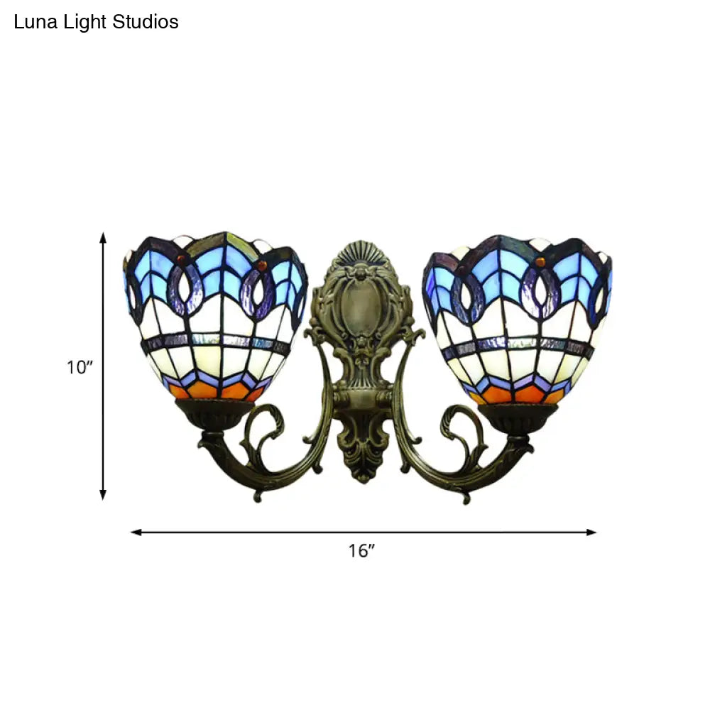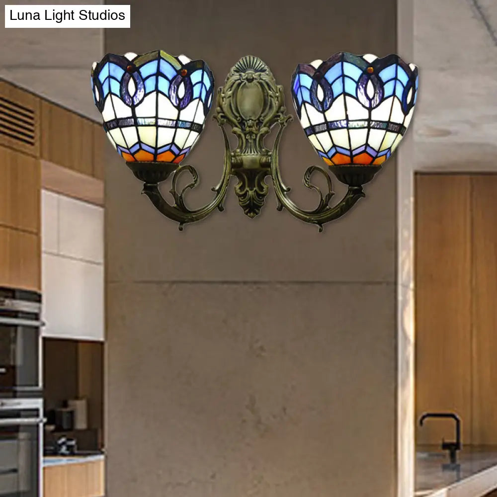 مصباح حائط على شكل قبة باروكية بغطاء زجاجي أزرق: ذراع منحني مع مصباحين، مثالي لإضاءة الشمعدان في غرفة النوم