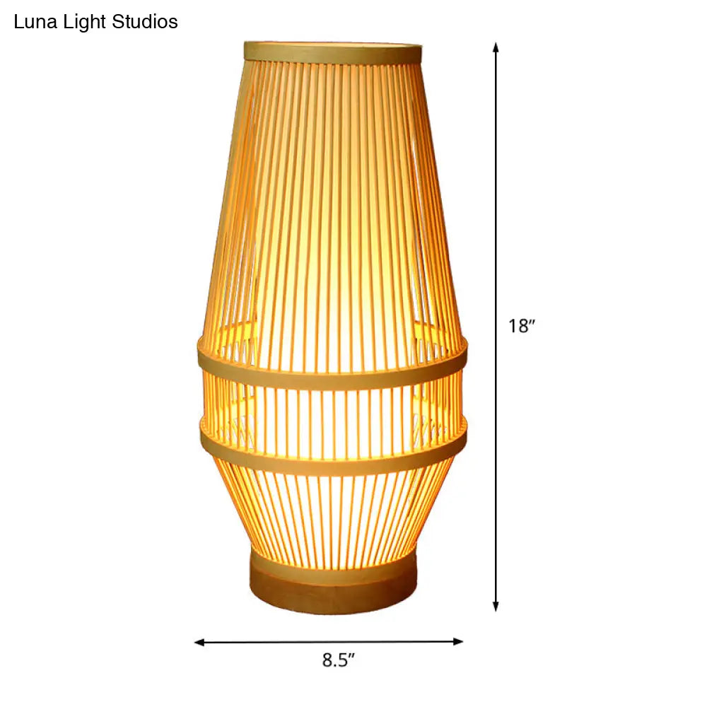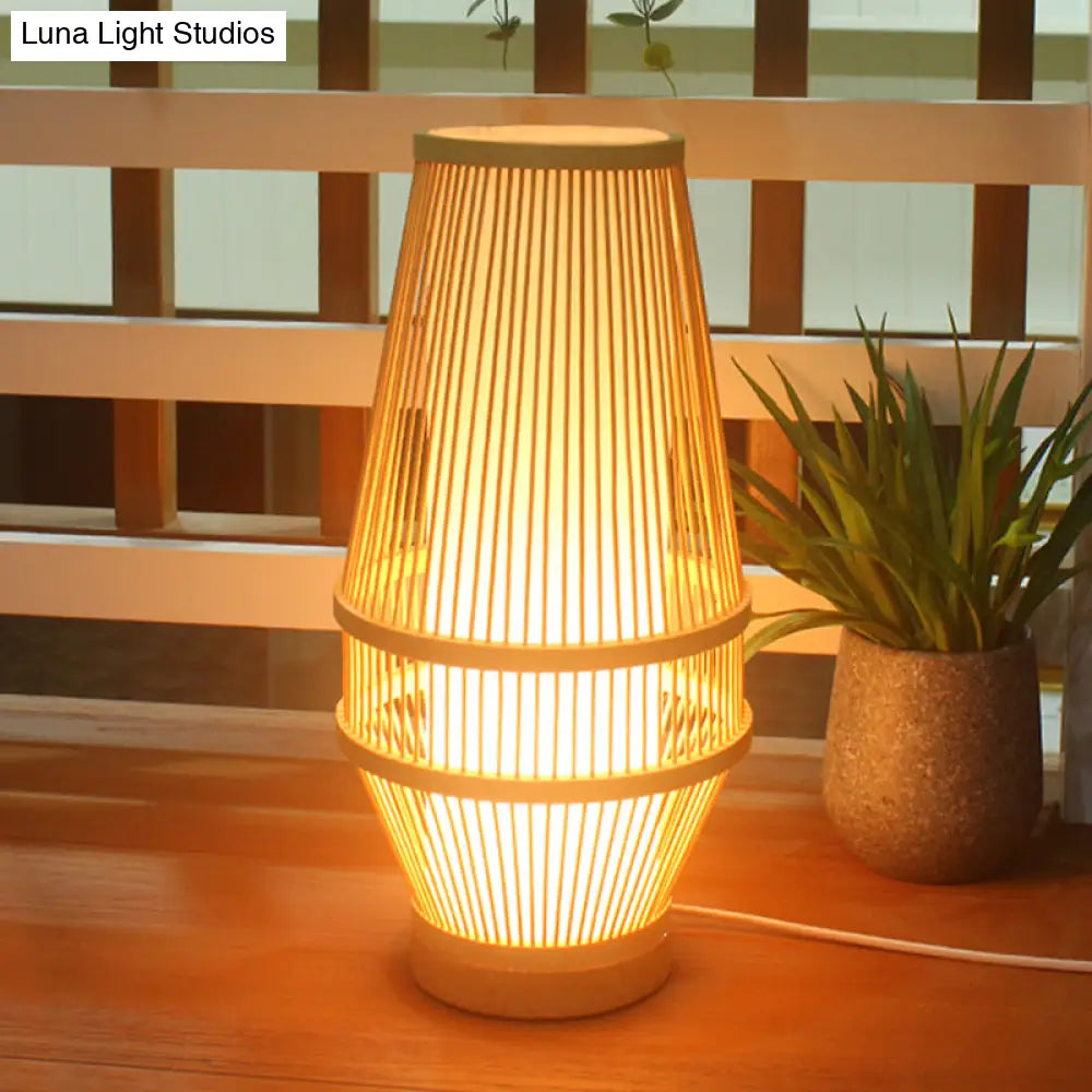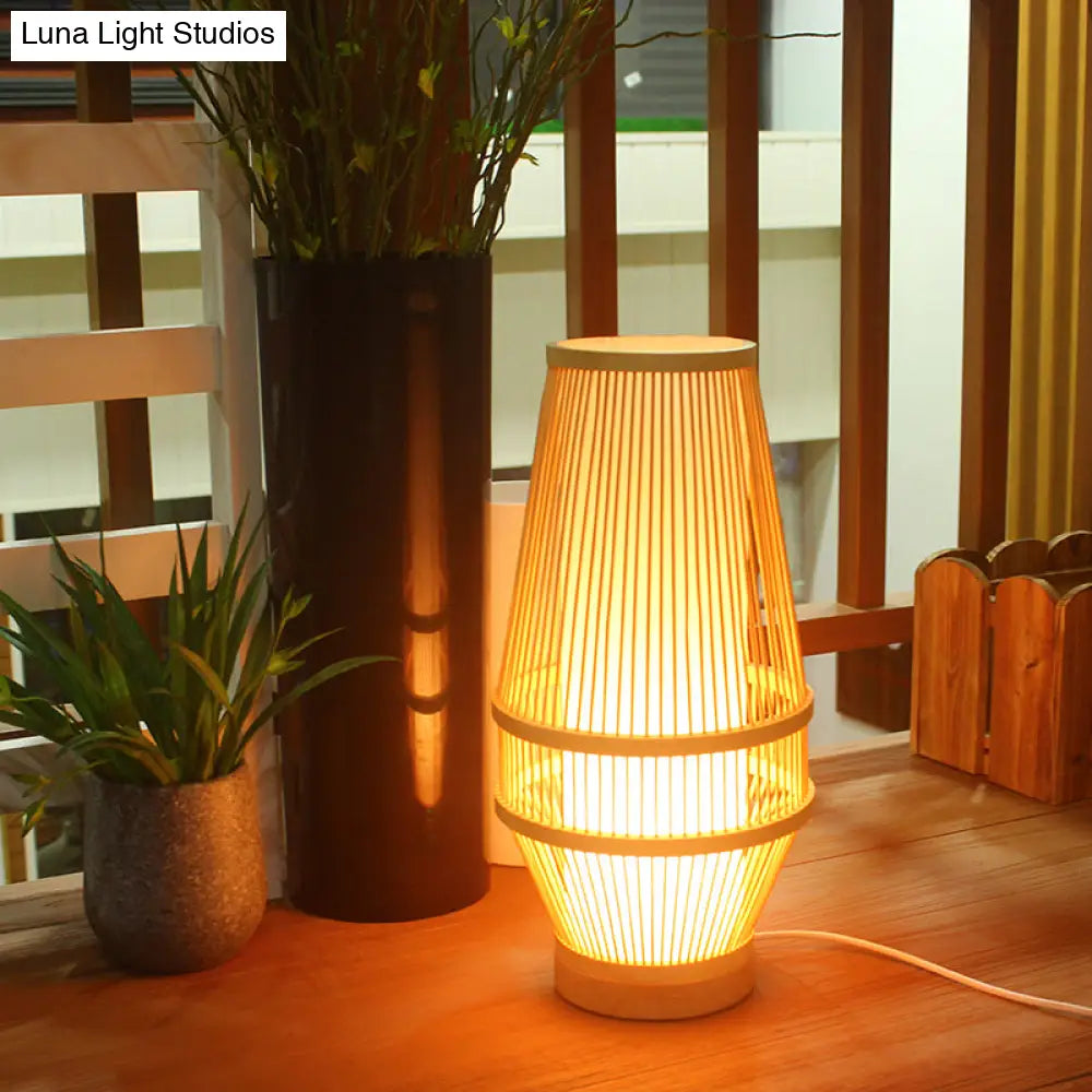 مصباح مكتب من الخيزران - على الطراز الياباني مع غطاء بيج وإضاءة داخلية أنبوبية