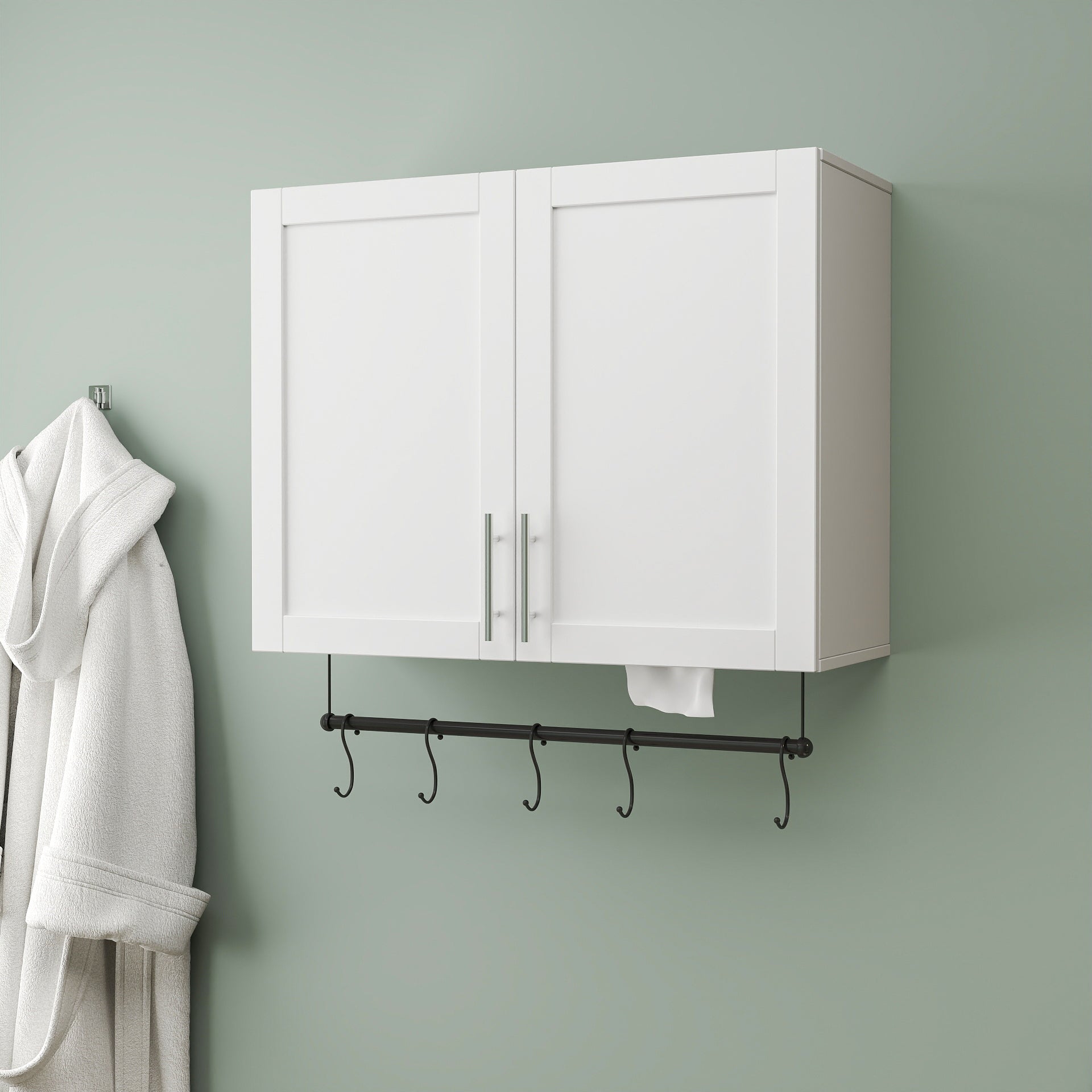Bathroom Wall Cabinet With Adjustable Shelf, Towel Bar, 5 Hooks, Over The Toilet Storage Cabinet For Bathroom, Kitchen, White