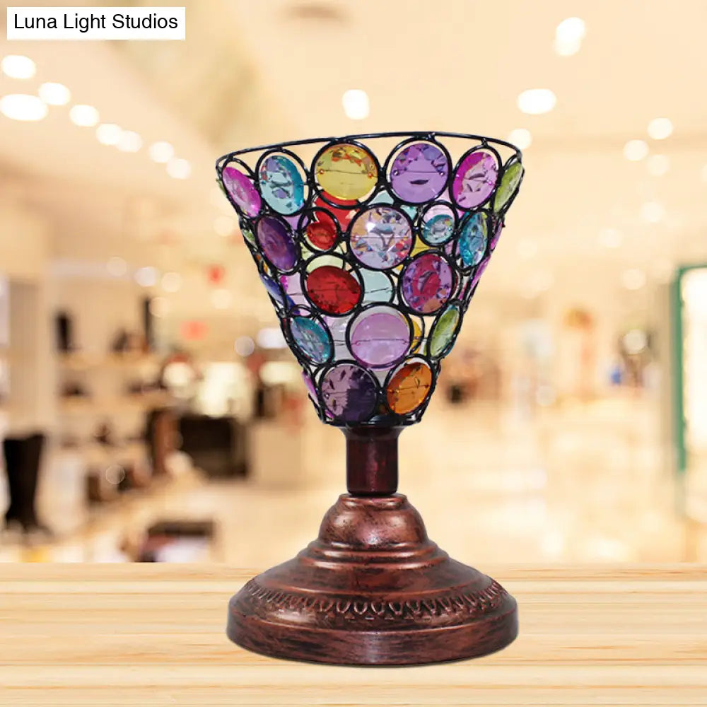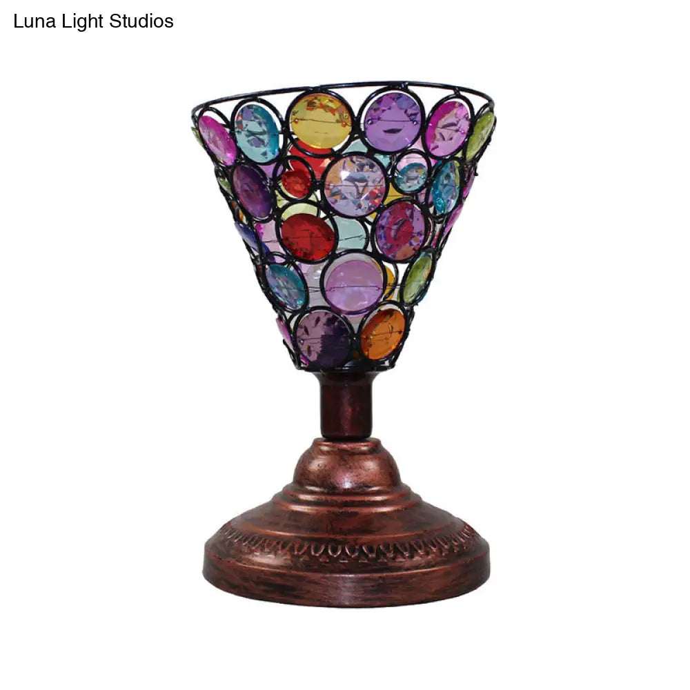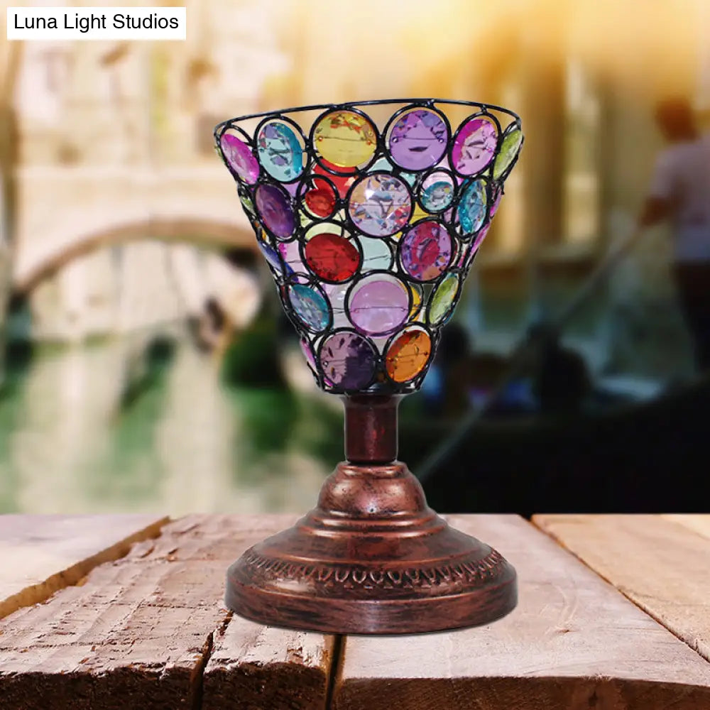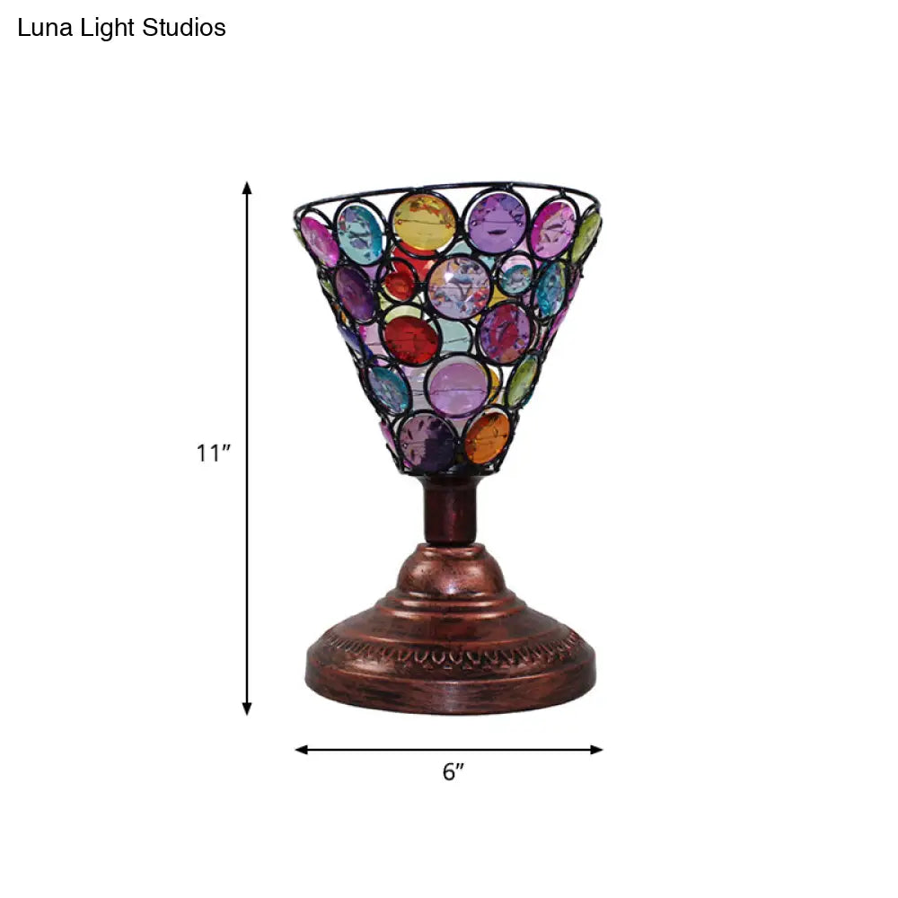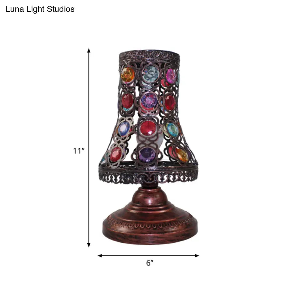 مصباح طاولة ليلية لغرفة النوم على شكل جرس/مخروط معدني نحاسي، إضاءة زخرفية لطاولة النوم، عرض 5.5 بوصة/6 بوصة