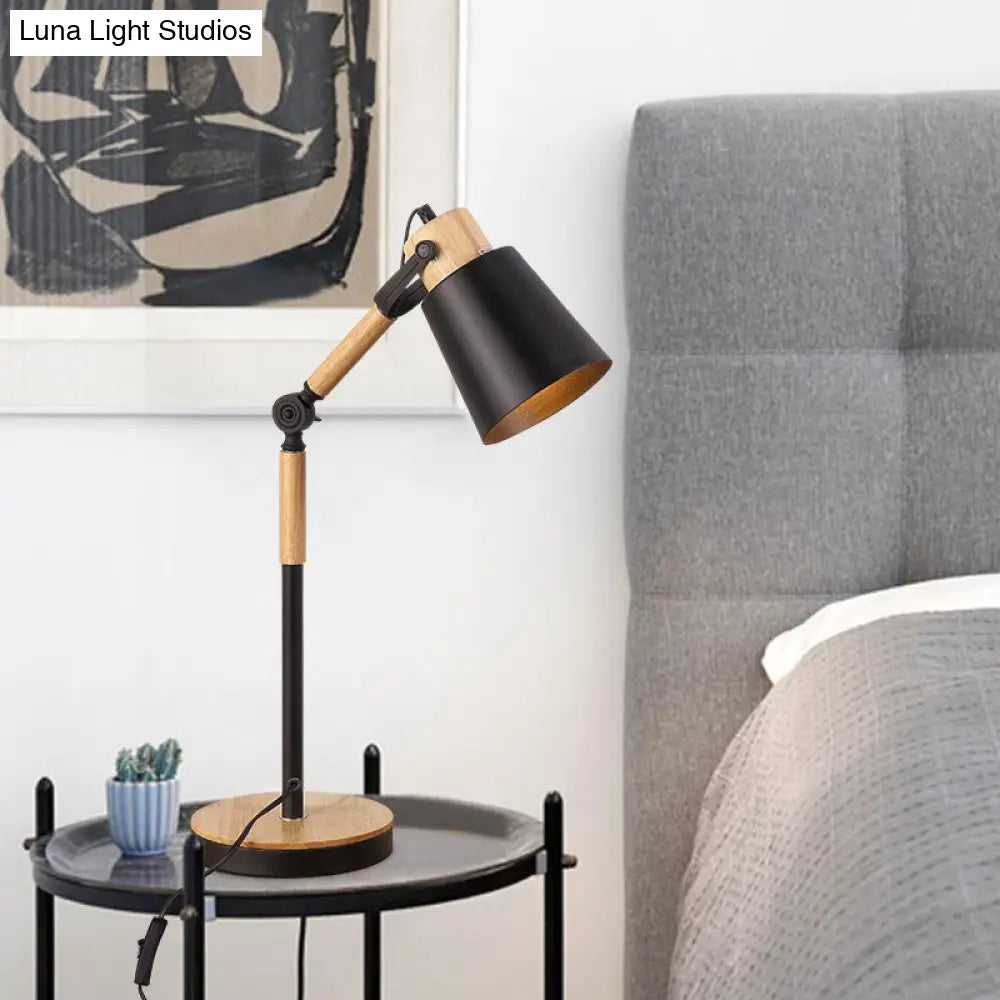 مصباح مكتبي معاصر على شكل جرس معدني - مصباح طاولة ليلي أسود/أبيض بمصباح واحد