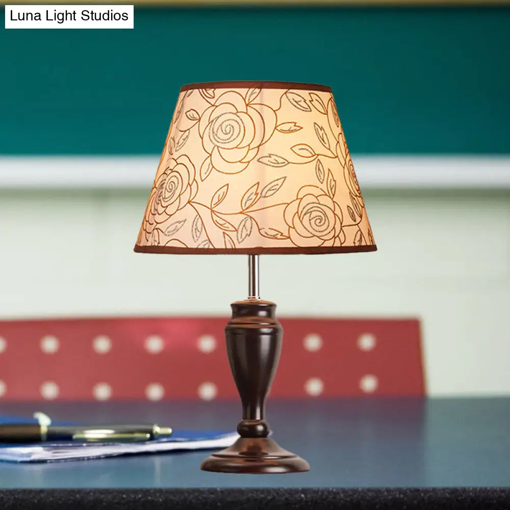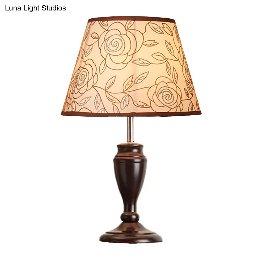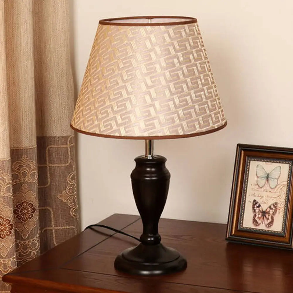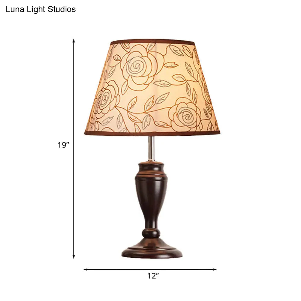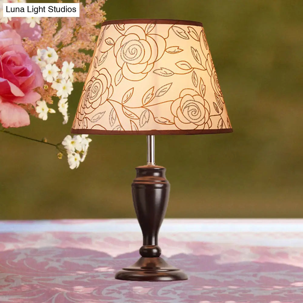 مصباح طاولة بني بغطاء قماشي مدبب ونمط زهري/مقصوص/هندسي - إضاءة ريفية لطاولات السرير