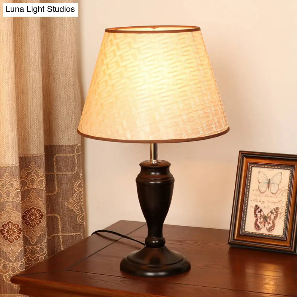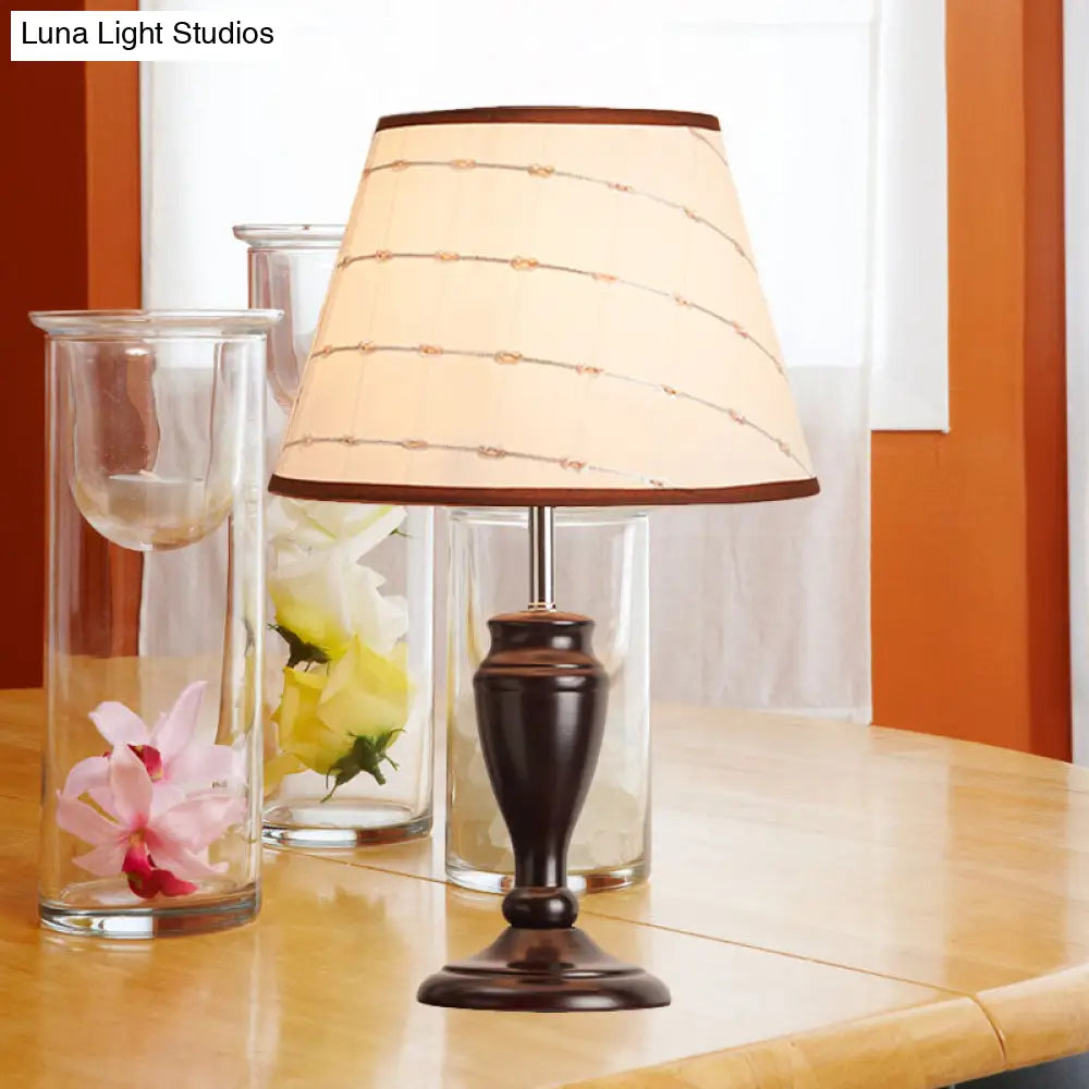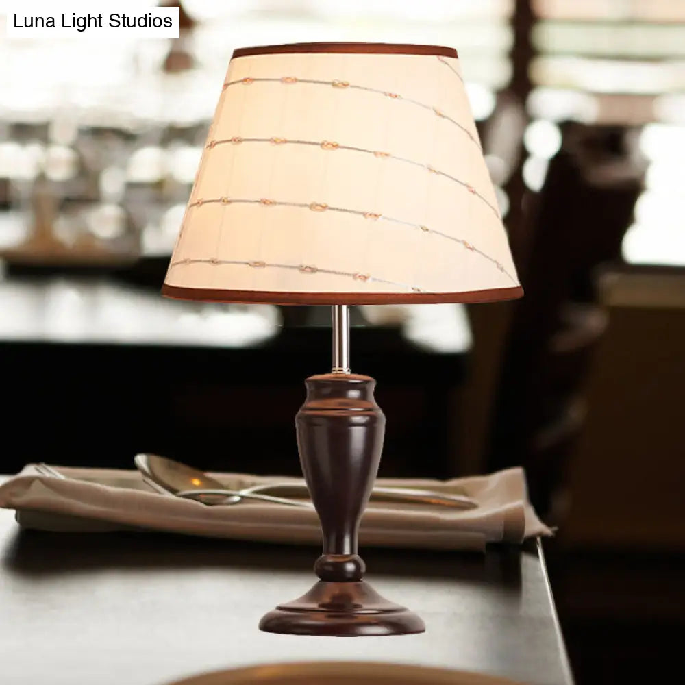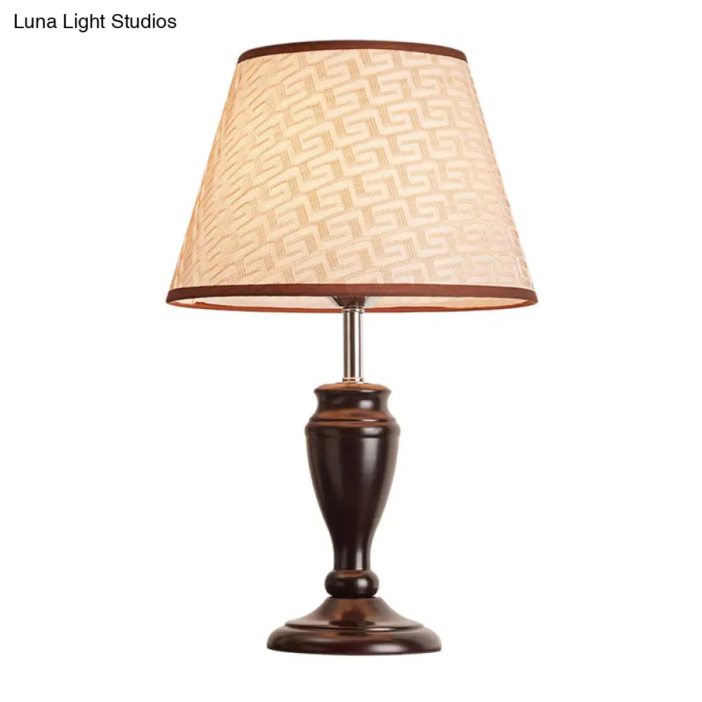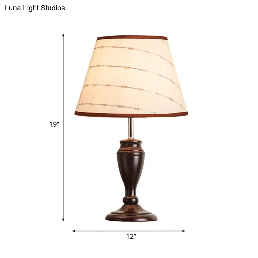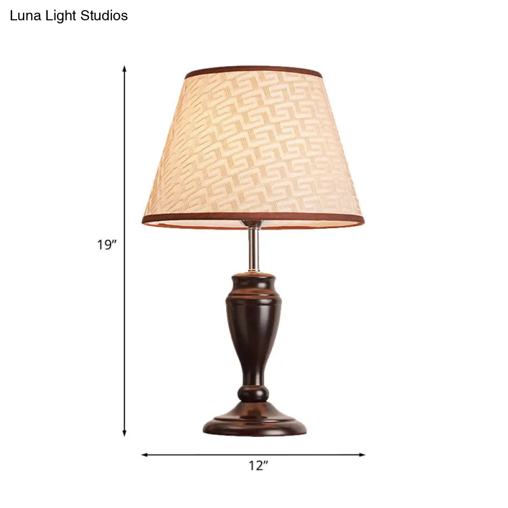 مصباح طاولة بني بغطاء قماشي مدبب ونمط زهري/مقصوص/هندسي - إضاءة ريفية لطاولات السرير