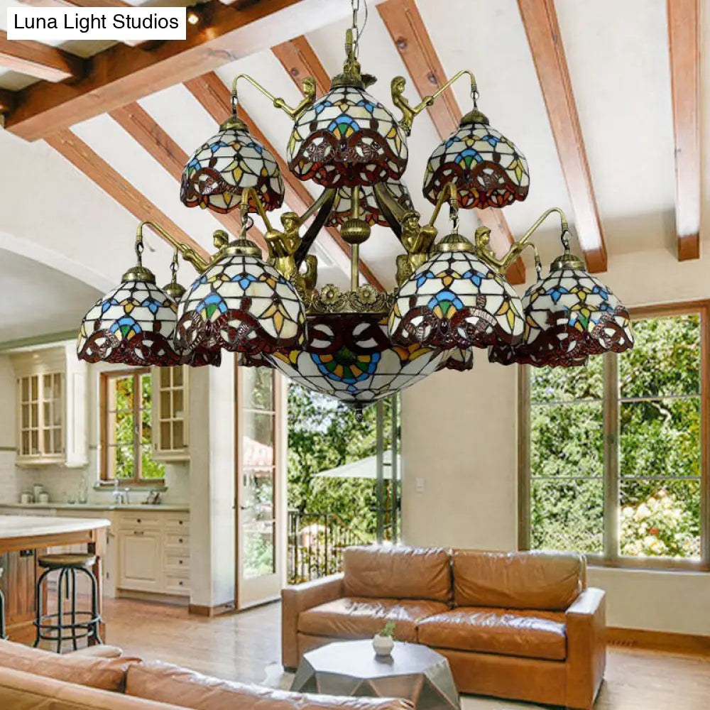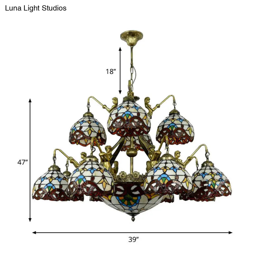ثريا بنية اللون بتصميم حورية البحر مع قبة زجاجية تيفاني لغرفة المعيشة - 15 مصباحًا