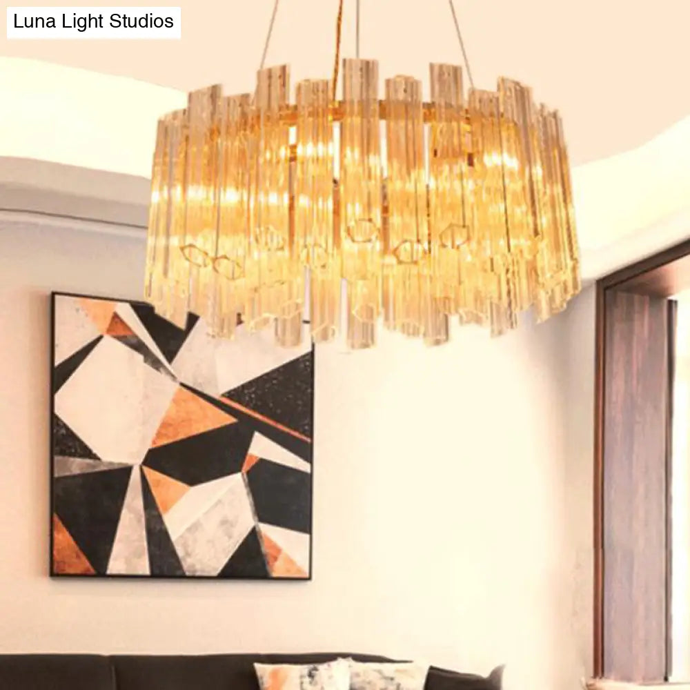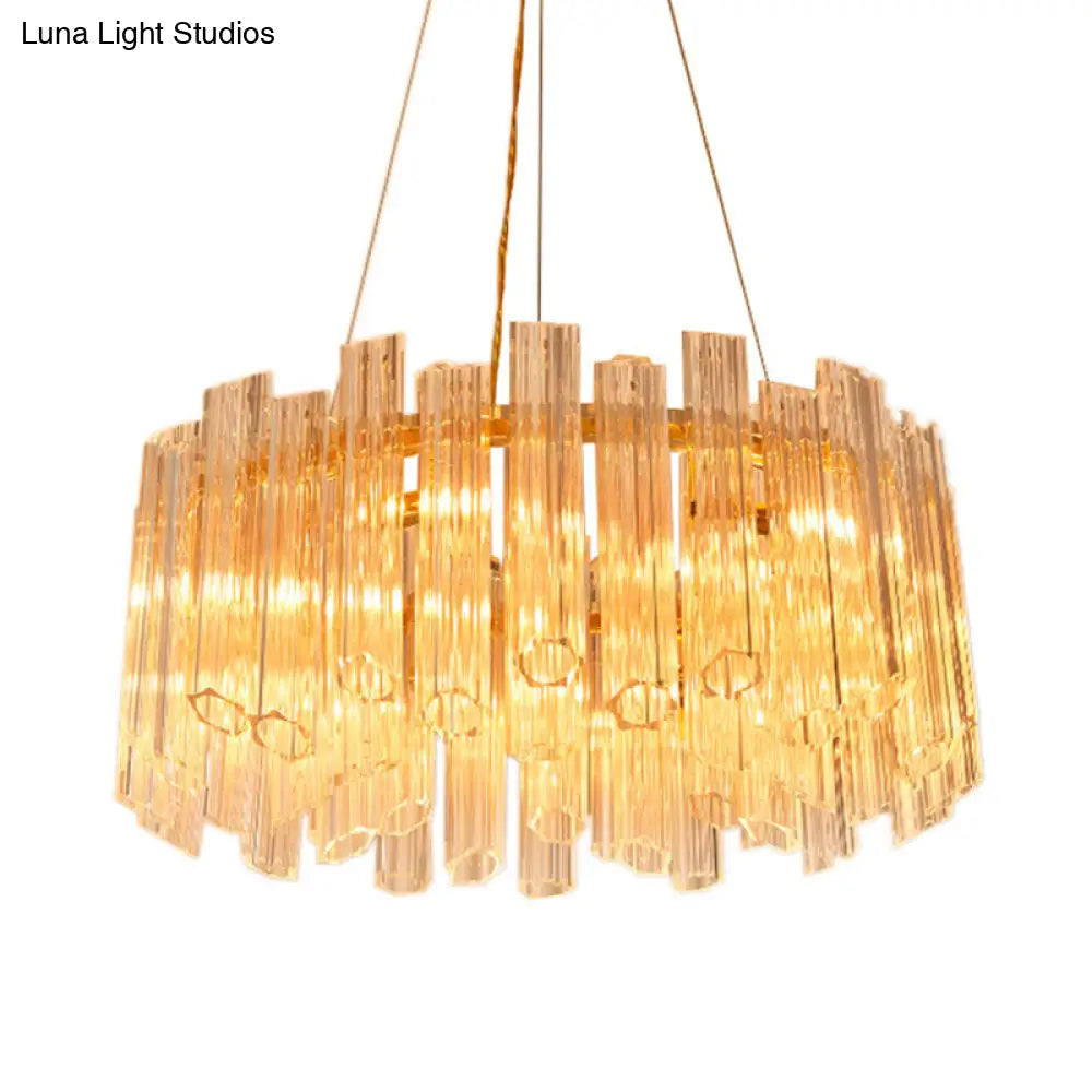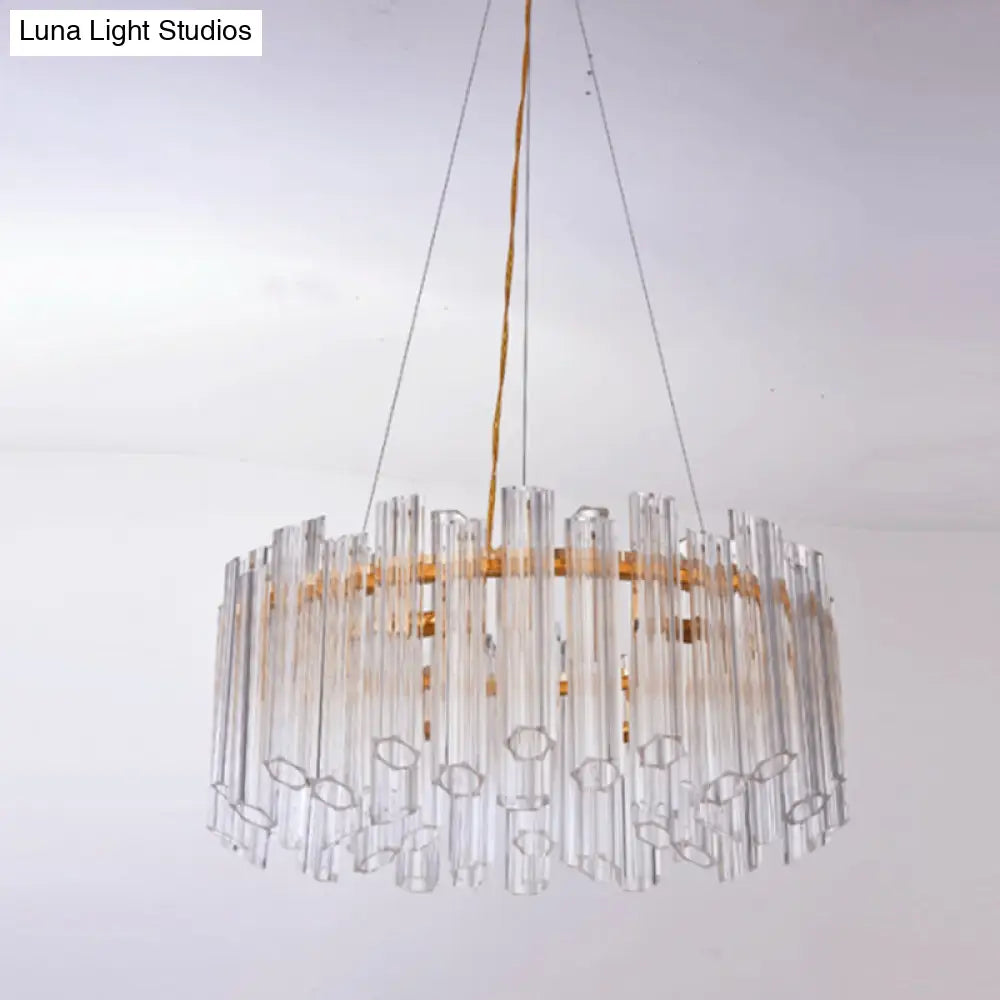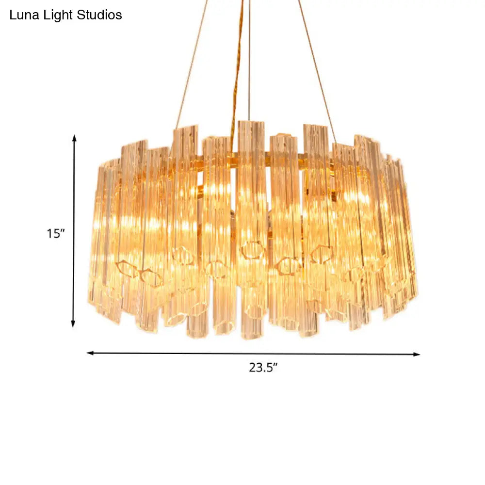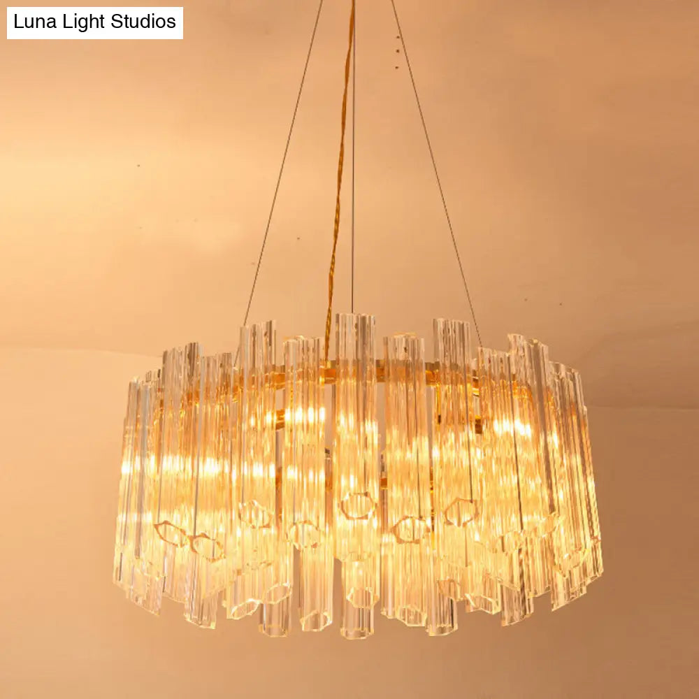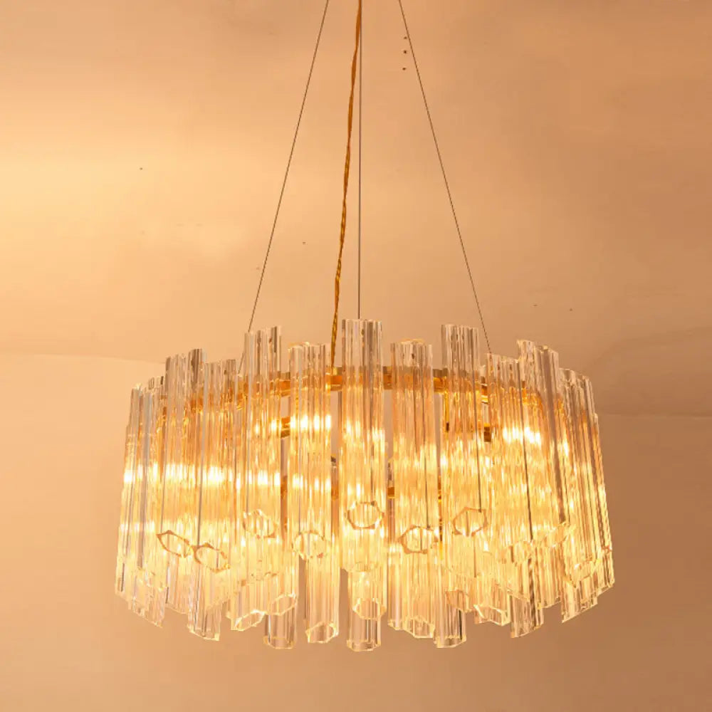 ثريا دائرية حديثة: كريستال شفاف مُضلّع، 8 رؤوس، وحدة إضاءة ذهبية معلقة
