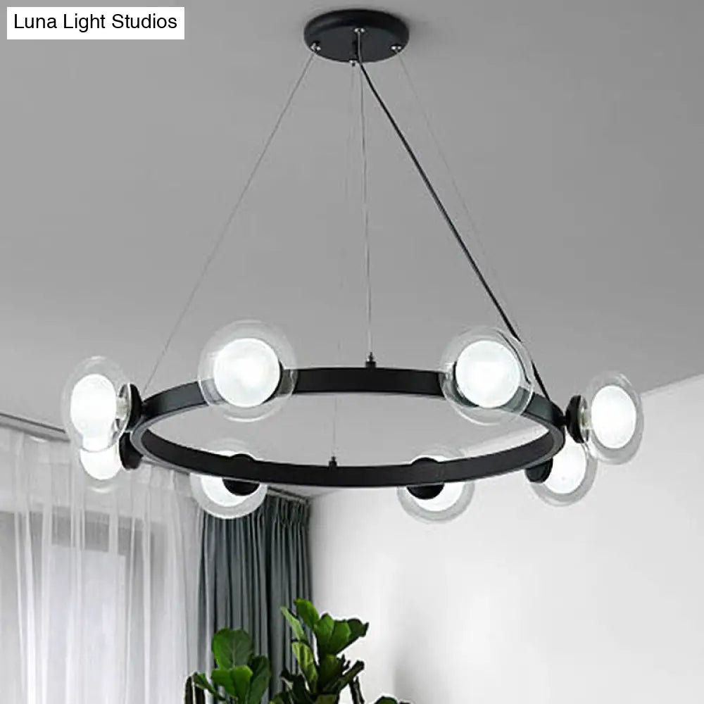 ثريا زجاجية شفافة معاصرة بتصميم حلقة دائرية - مصباح LED معلق 6/8 ضوء باللون الأسود