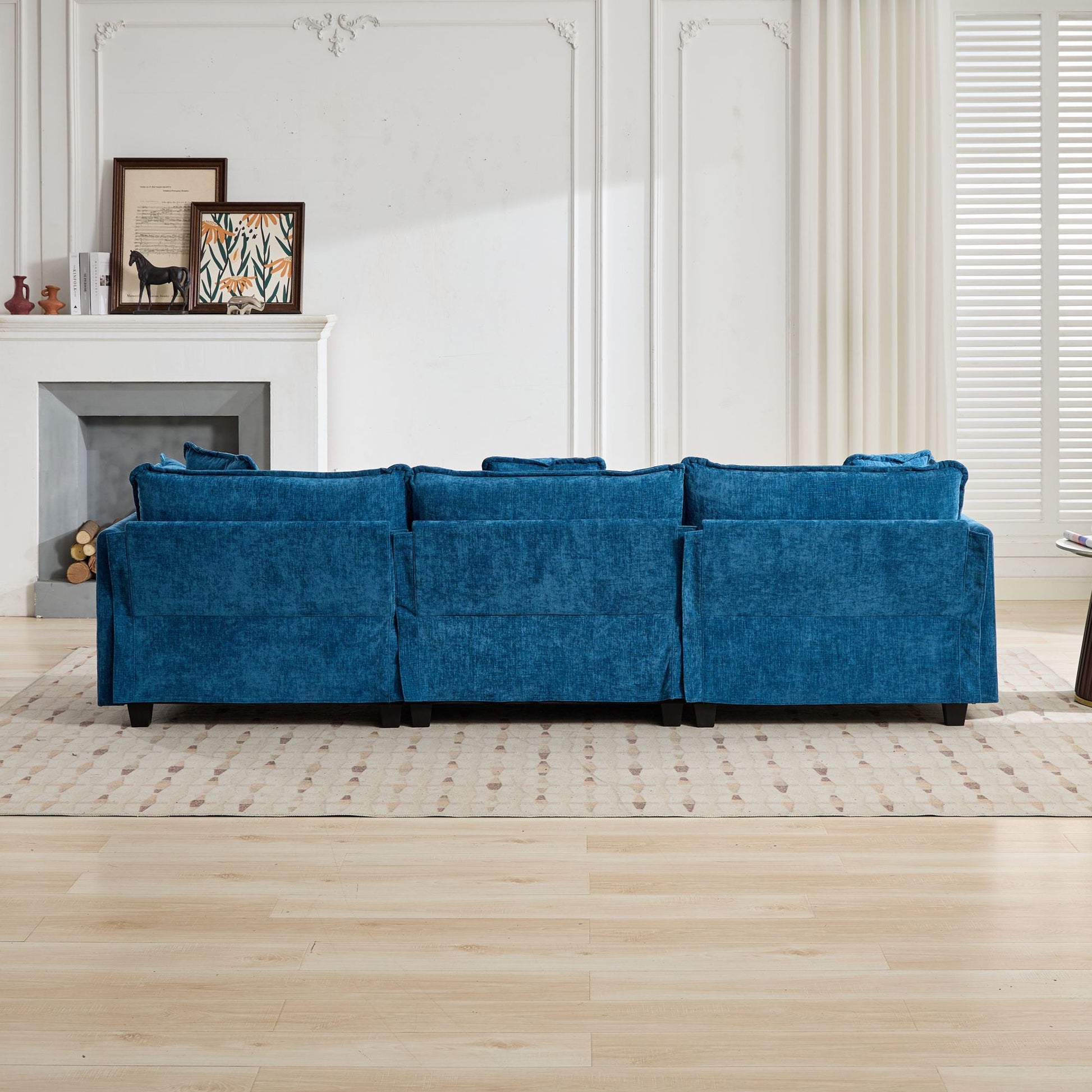 Cloud Sofa Two Seats The Cushion On The Armrest Not Included, Modern Sectional Couch, For Apartment, Comfy Double Layer Upholstered Seat Cushion, Breathable Chenille Fabric, Blue