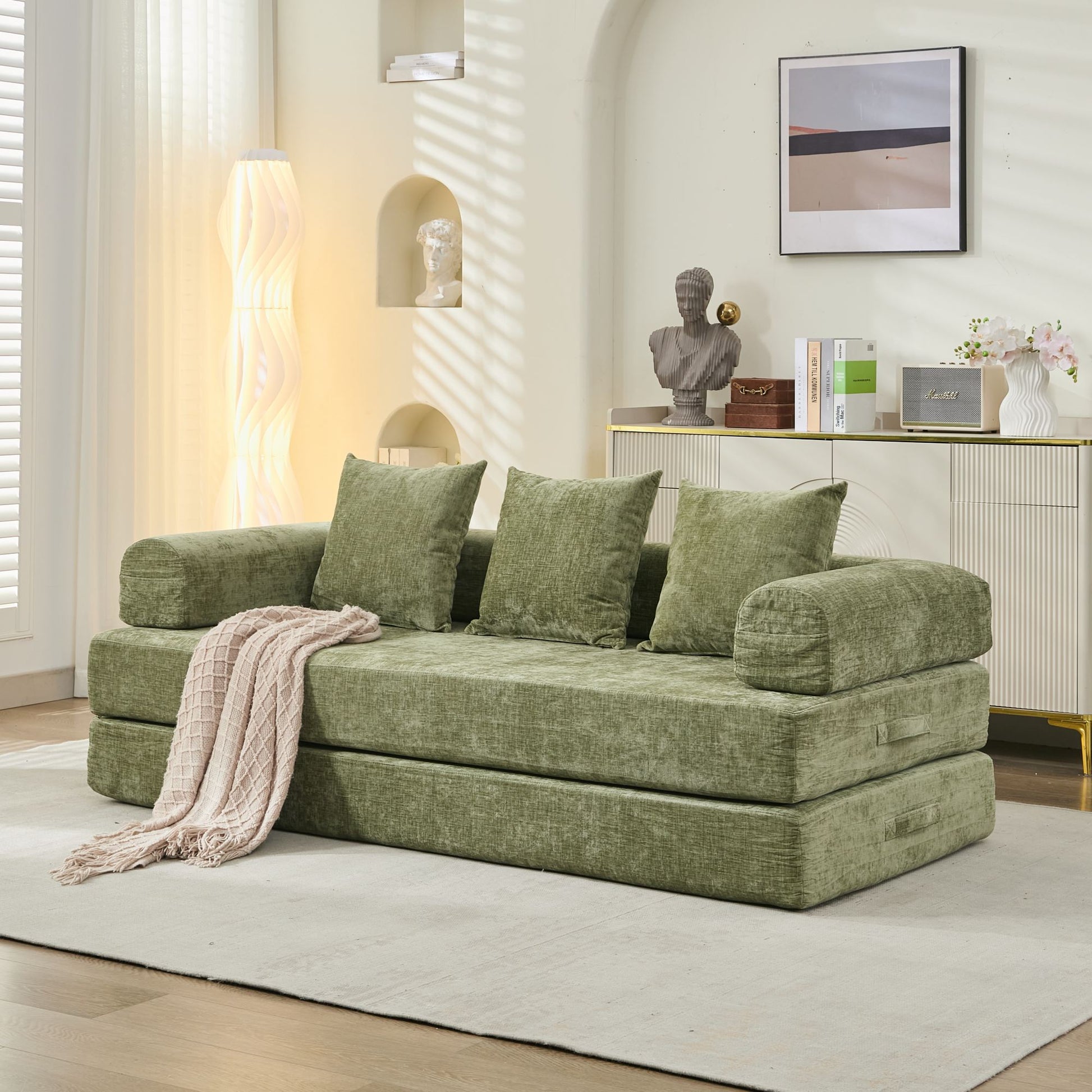 Product Name:Comfy Convertible Folding Mattress Couch, Floor Sofa Bed, Chenille Floor Sofa with Armrest, Floor Sofa Lounge Couch for Living Room Bedroom Lounge Studio-Green