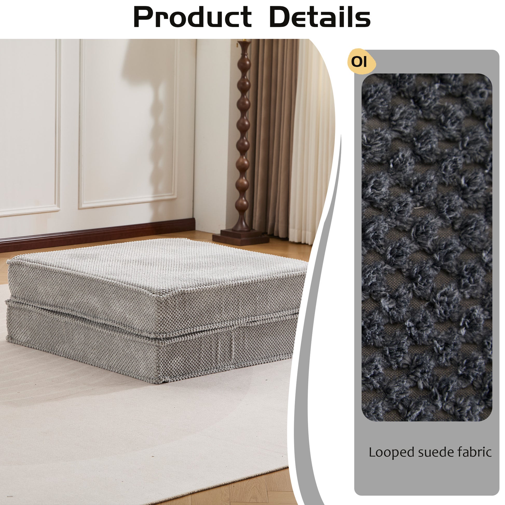 Product Name:Compression Mahjong Sofa,Convertible Floor Sofa Bed , DIY Boneless Modular Sectional Sofa,No Assembly Required, Circle fleece fabric,1 Ottoman,Light Grey
