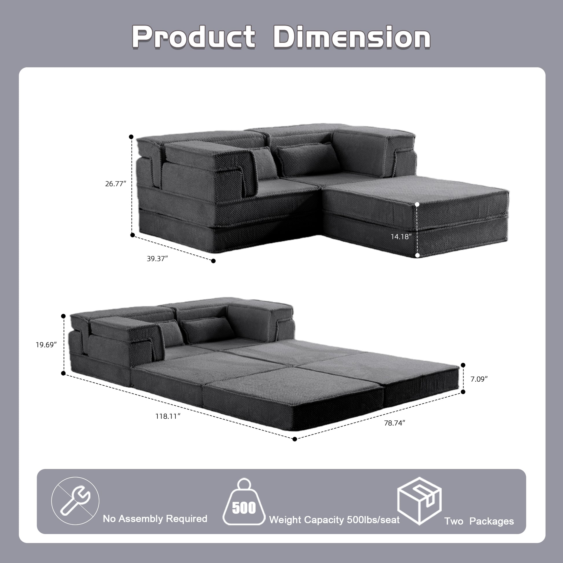 Product Name:Compression Mahjong Sofa,Convertible Floor Sofa Bed,DIY Boneless Modular Sectional Sofa,No Assembly Required,Circle fleece fabric,Oversized 2 Seater with 1 Ottoman,Dark-grey