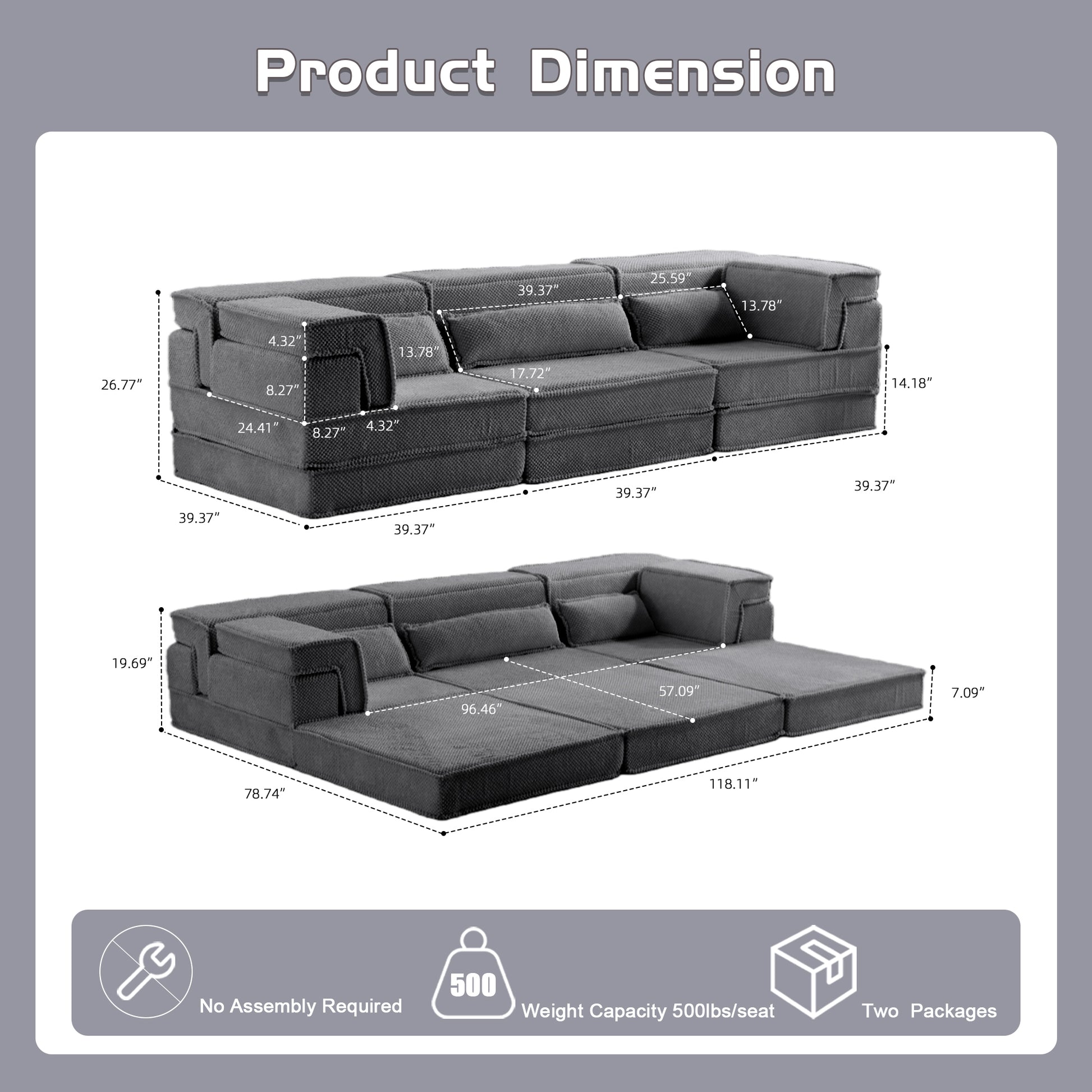Product Name:Compression Mahjong Sofa,Convertible Floor Sofa Bed,DIY Boneless Modular Sectional Sofa,No Assembly Required,Circle fleece fabric,Oversized 3 Seater with 3 Pillows,Dark-Grey