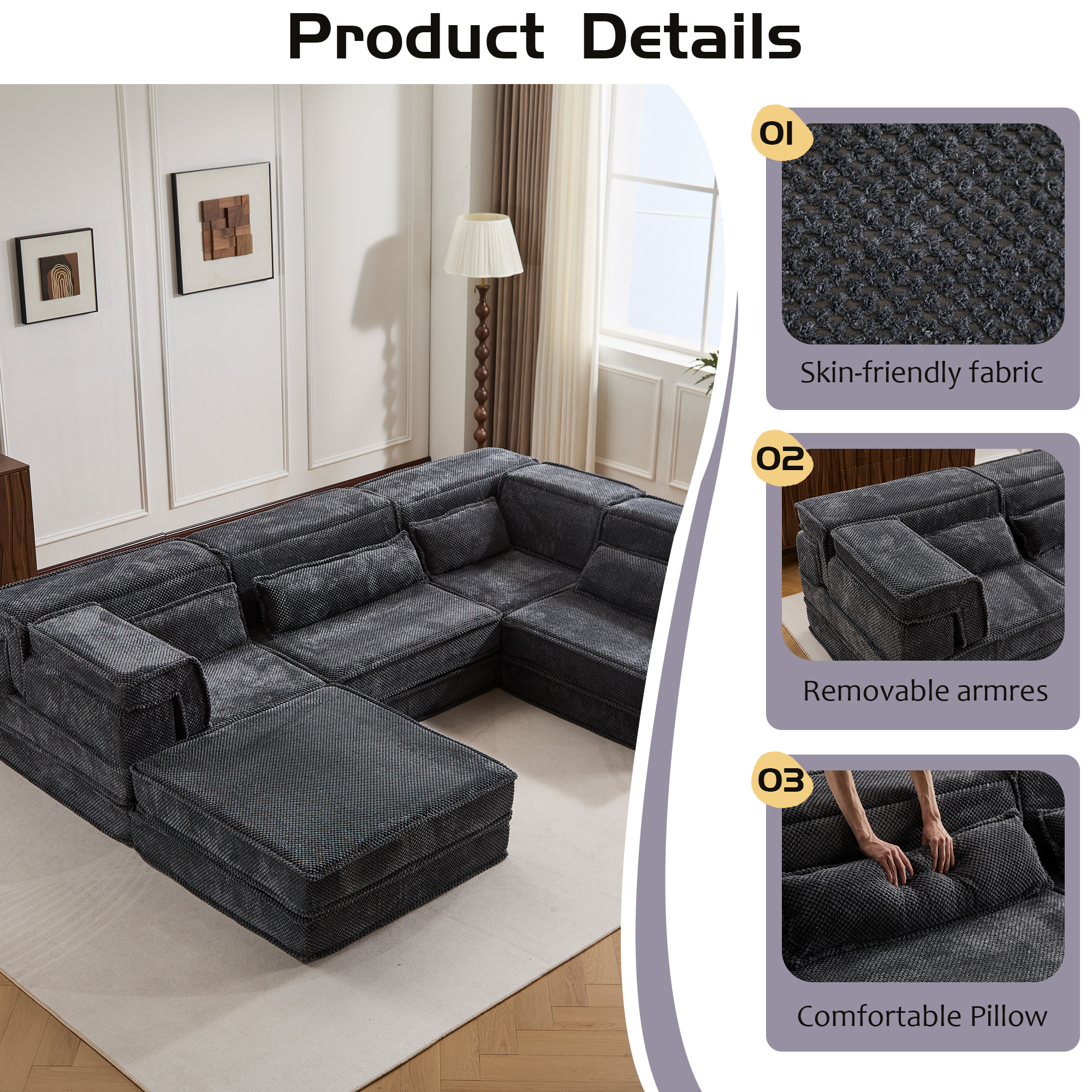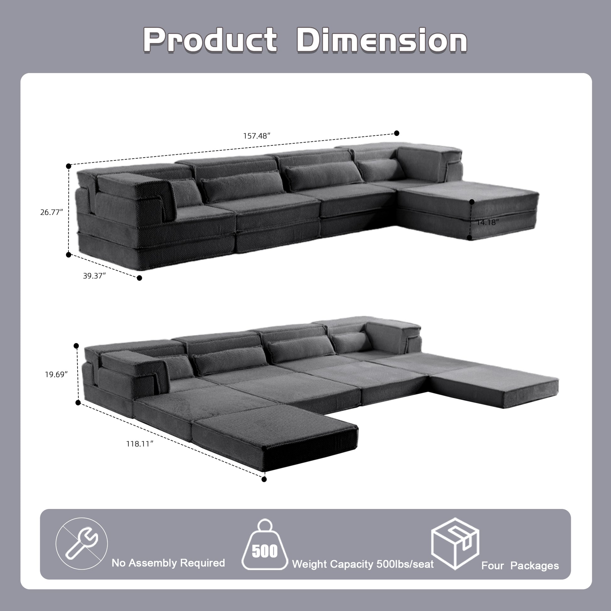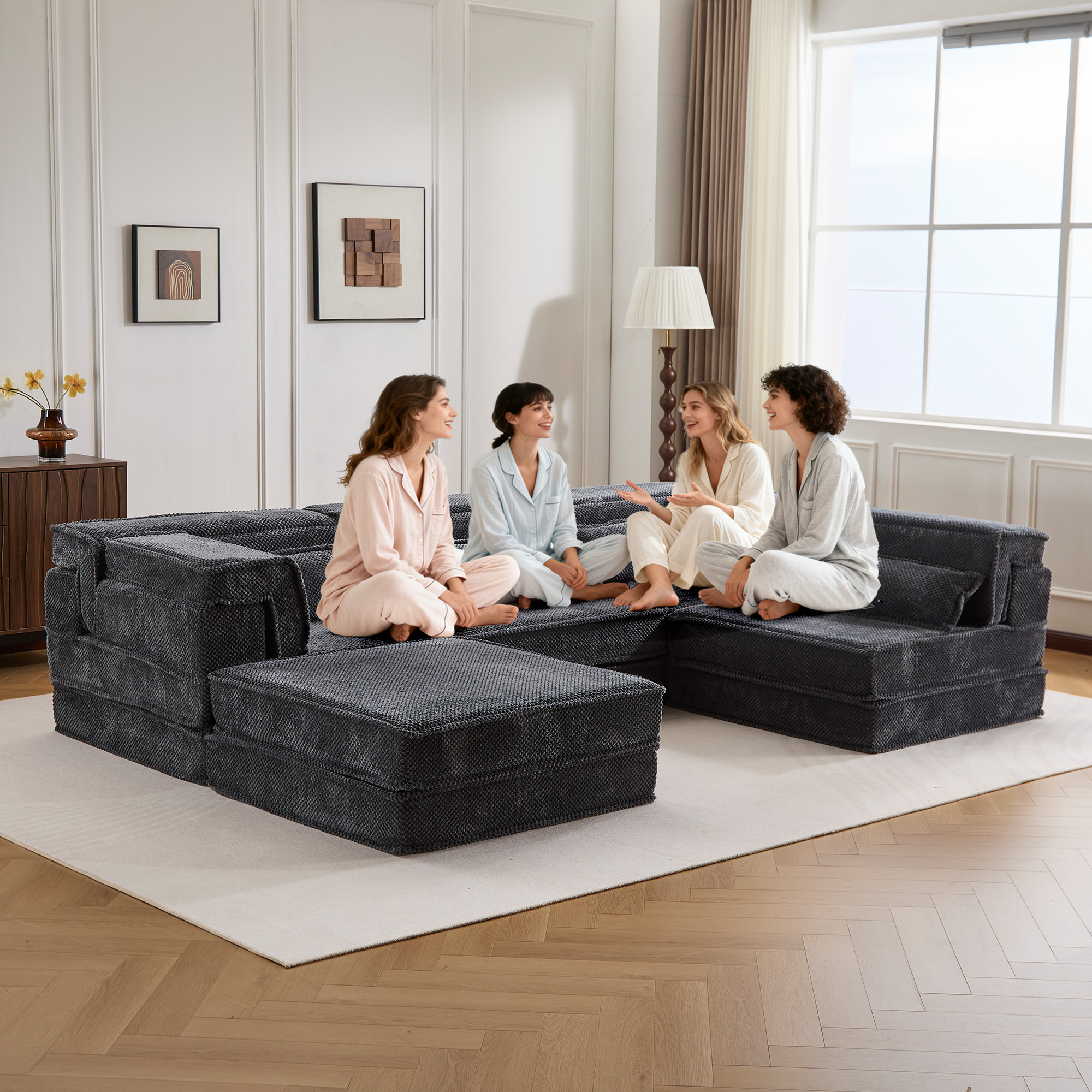 Product Name:Compression Mahjong Sofa,Convertible Floor Sofa Bed,DIY Boneless Modular Sectional Sofa,No Assembly Required,Circle fleece fabric,Oversized 4 Seater with 1 Ottoman,Dark-grey