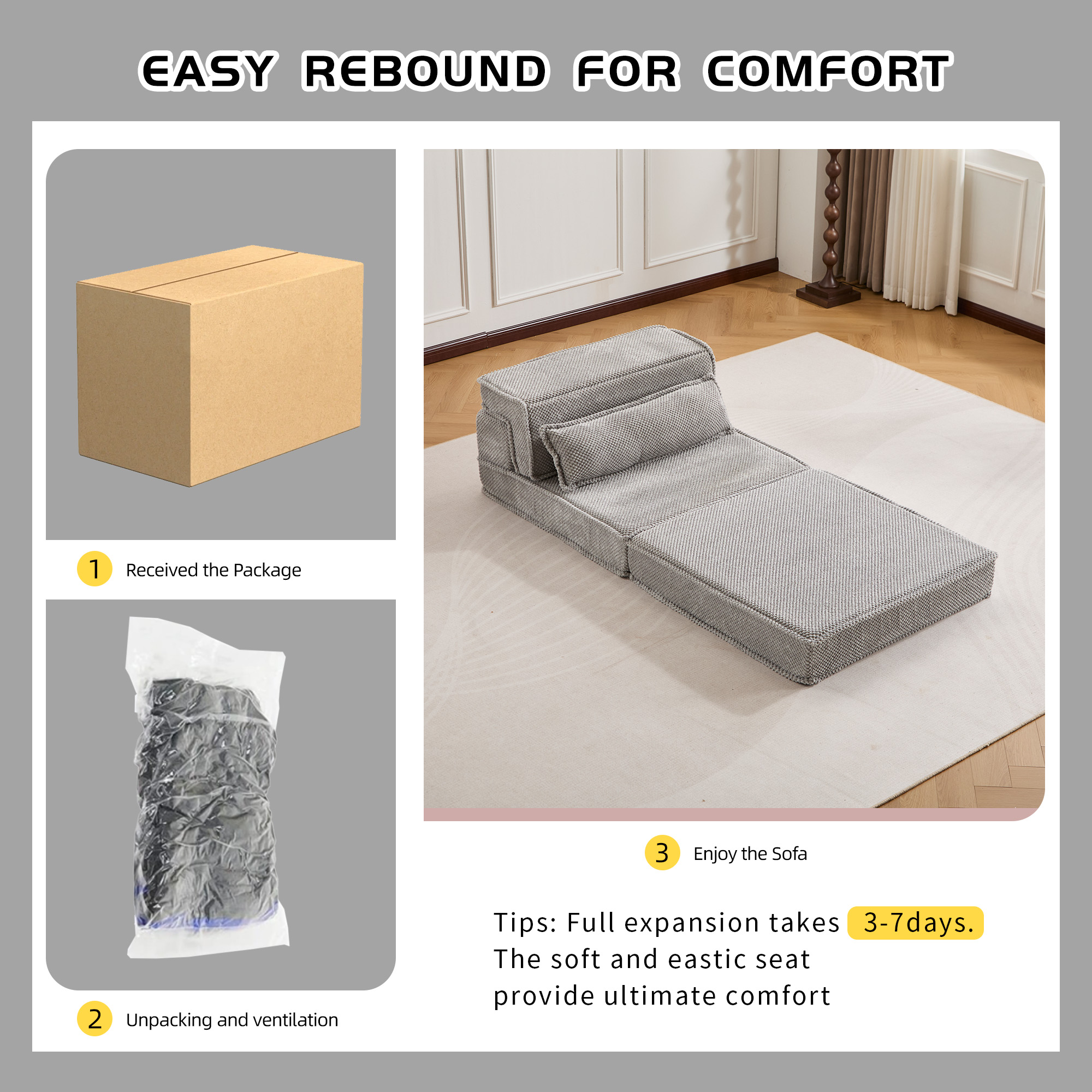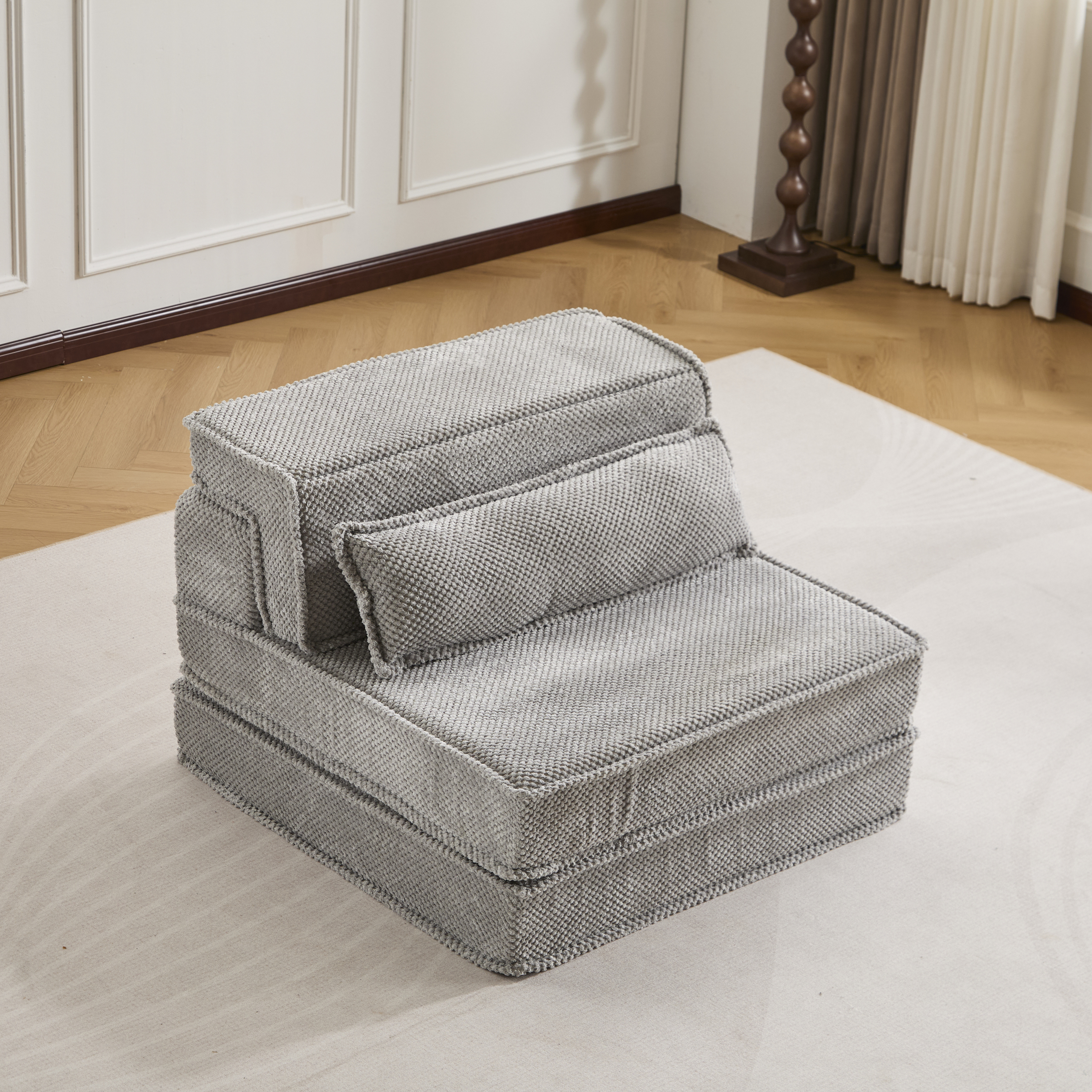 Product Name:Compression Mahjong Sofa,Convertible Floor Sofa Bed ,DIY Boneless Modular Sectional Sofa,No Assembly Required,Circle fleece fabric,Oversized Single Sofa with 1 Pillow,Light Grey