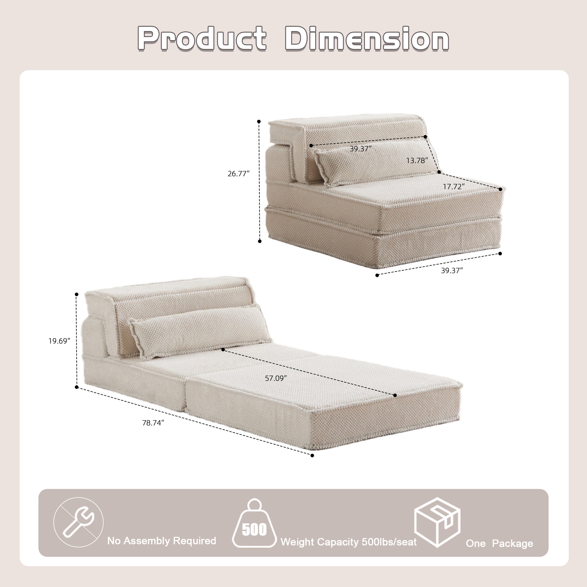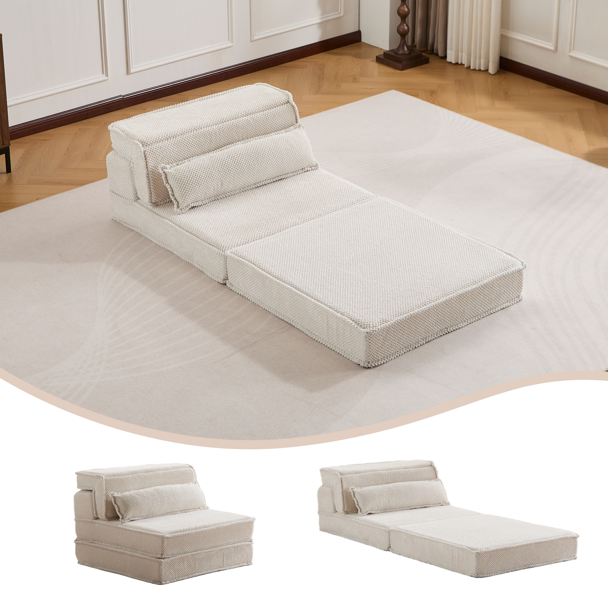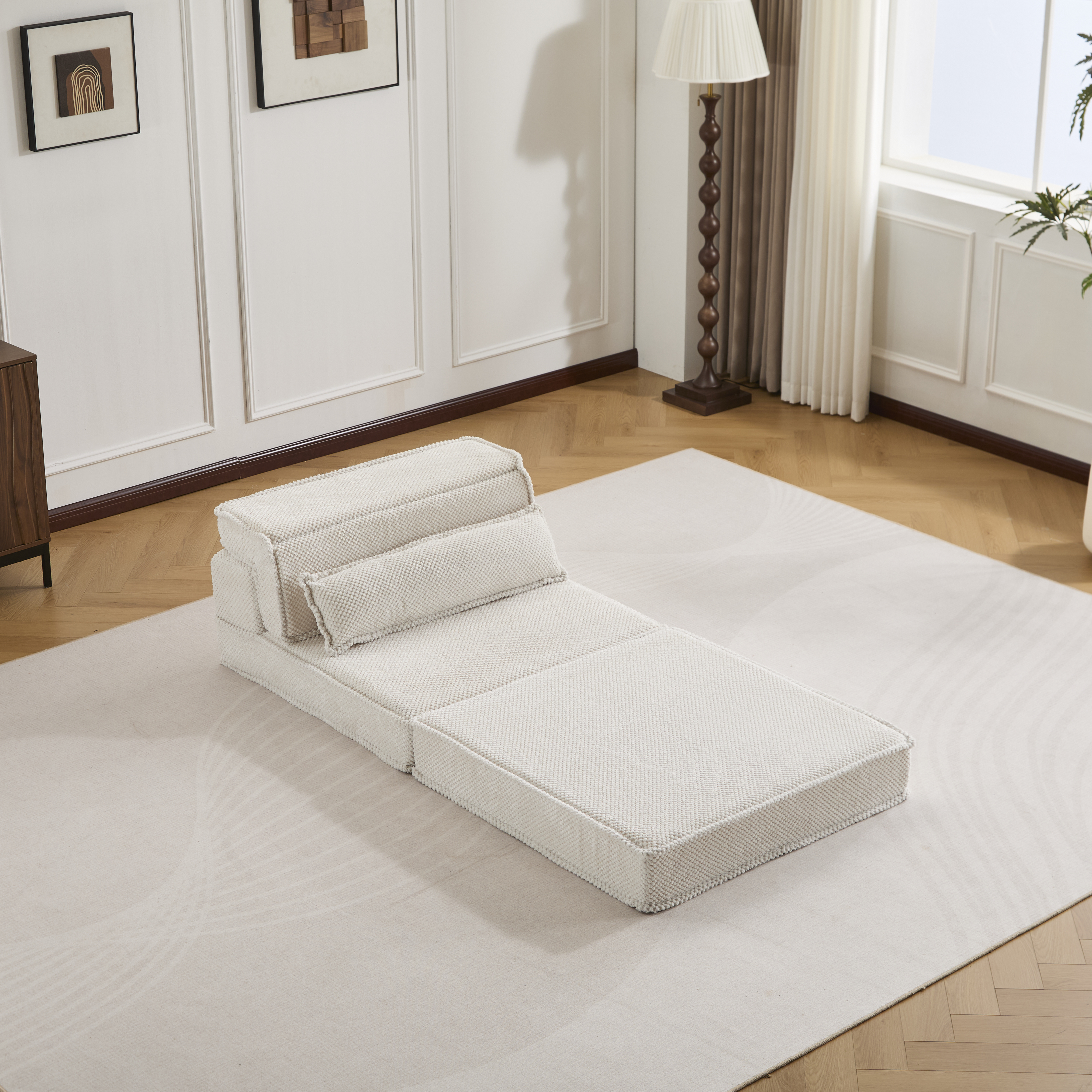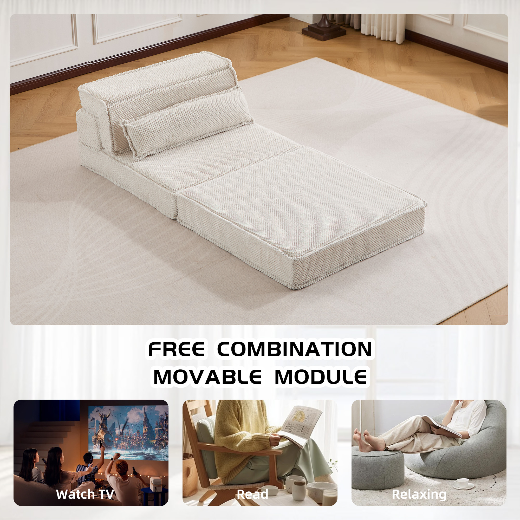 Product Name:Compression Mahjong Sofa,Convertible Floor Sofa Bed,DIY Boneless Modular Sectional Sofa,No Assembly Required,Circle fleece fabric,Oversized Single Sofa with 1 Pillow,White