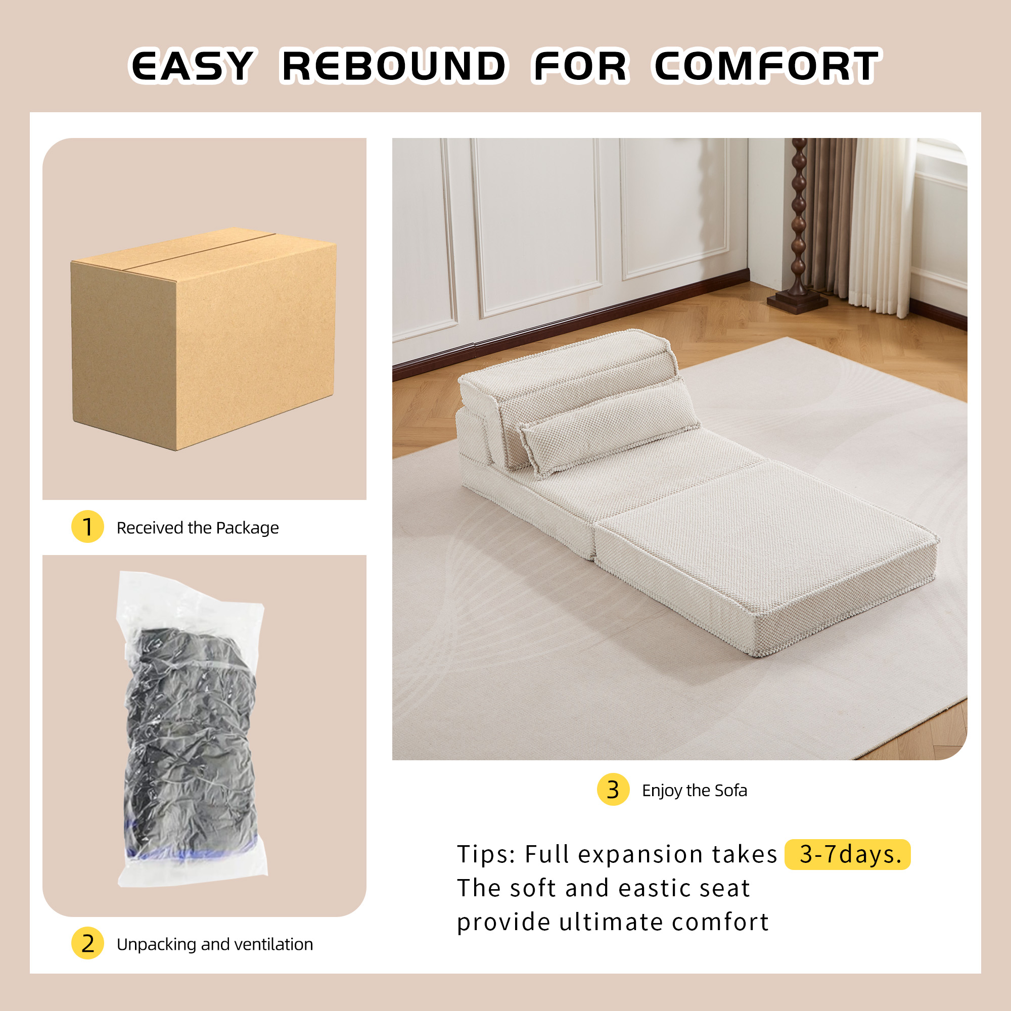 - 【No Assembly Required & Tips】The Convertible Modular Sectional mahjong sofa don't need to assemble. Tips: It takes time for the sofa to expand, Please unpack and wait 48-72 hours for full rebound.