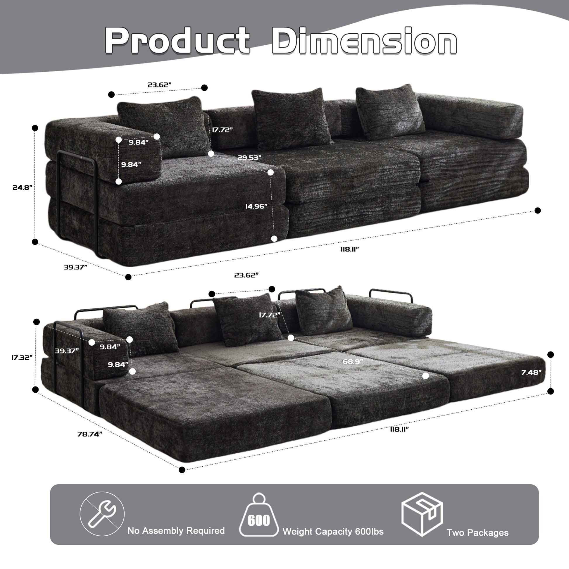 - 【No Assembly Required & Tips】The folding sofa don't need to assemble. Tips: It takes time for the convertible sofa bed to expand, once you opened it as the cushions are packed in a compressed state; in general cases, it will take approximately 72-96 hours to expand.