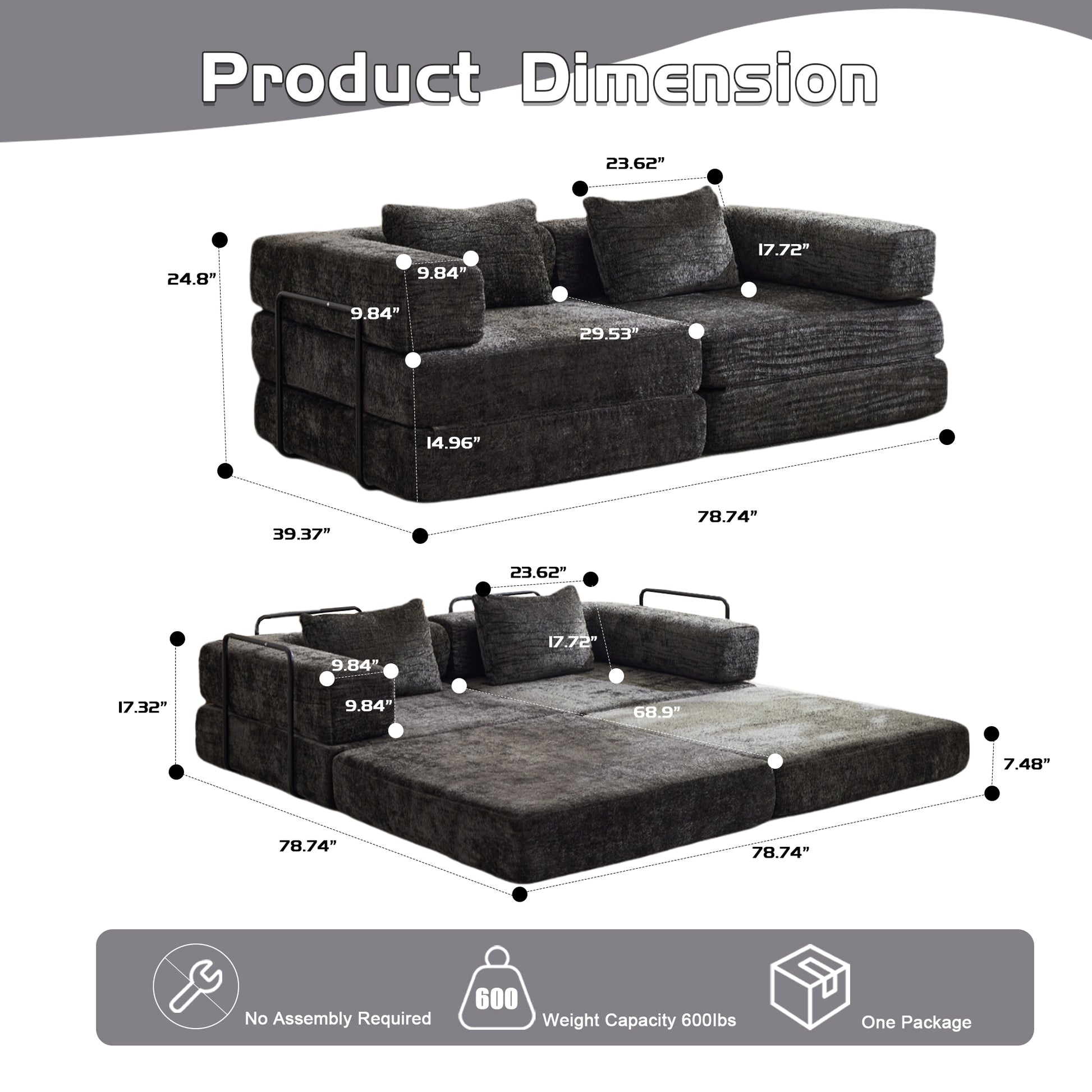 - 【No Assembly Required & Tips】The folding sofa don't need to assemble. Tips: It takes time for the convertible sofa bed to expand, once you opened it as the cushions are packed in a compressed state; in general cases, it will take approximately 72-96 hours to expand.