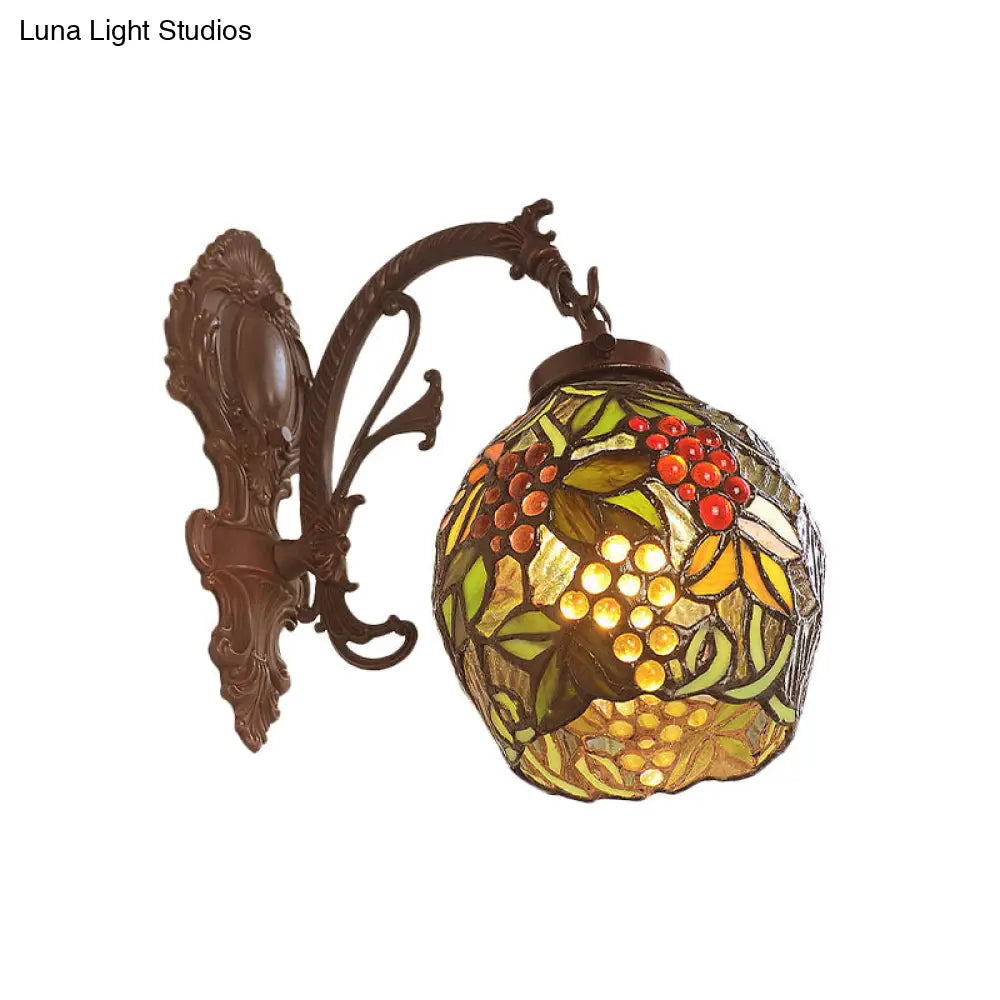 ثريا جدارية فنية من الزجاج الفيكتوري بقبة نحاسية وإضاءة واحدة - نقشة عنب من الزجاج الملون - تركيبات لغرفة الطعام