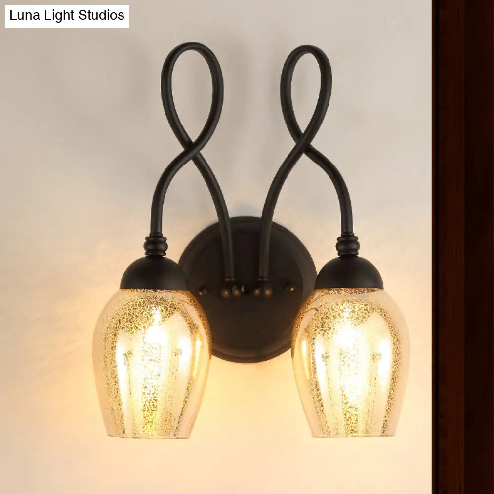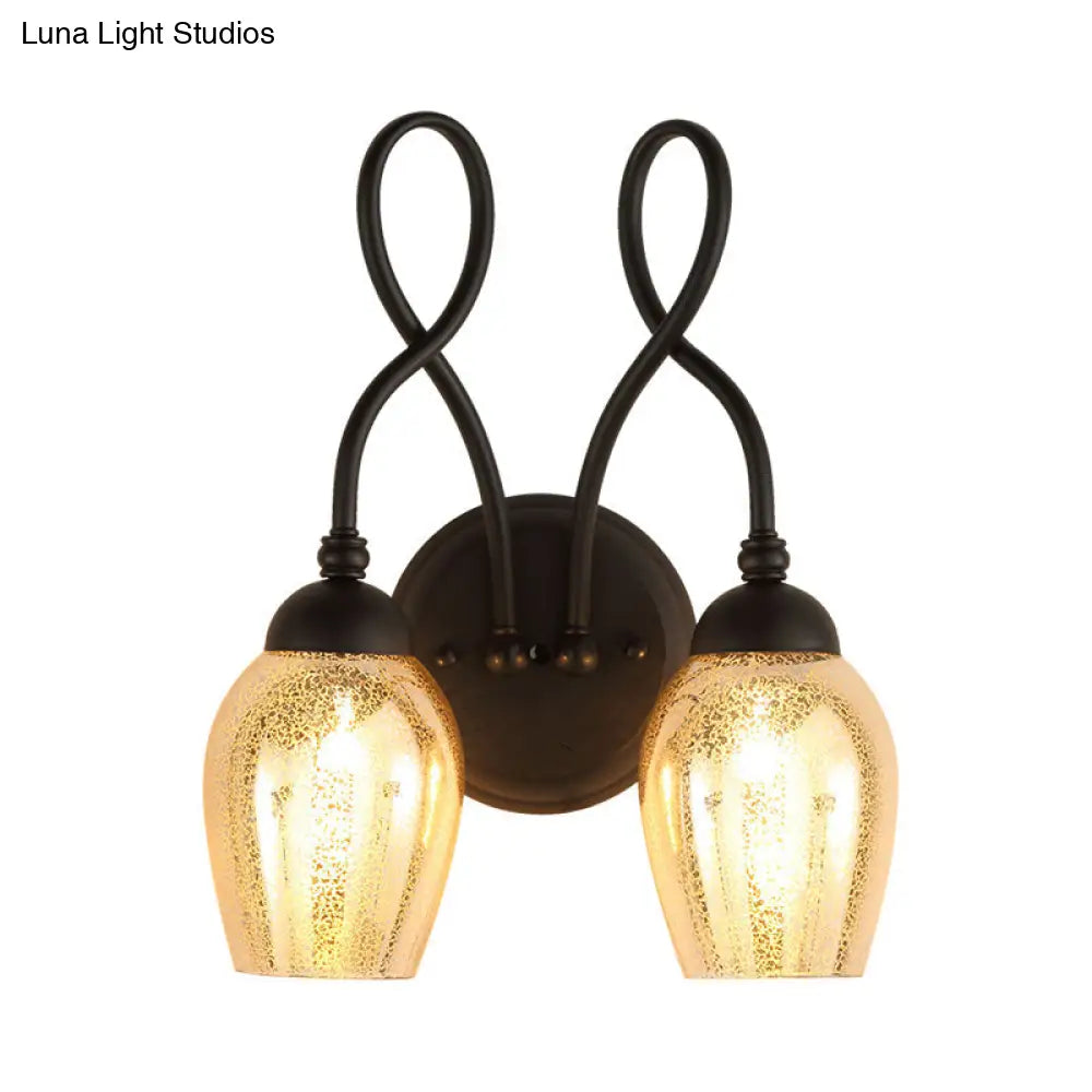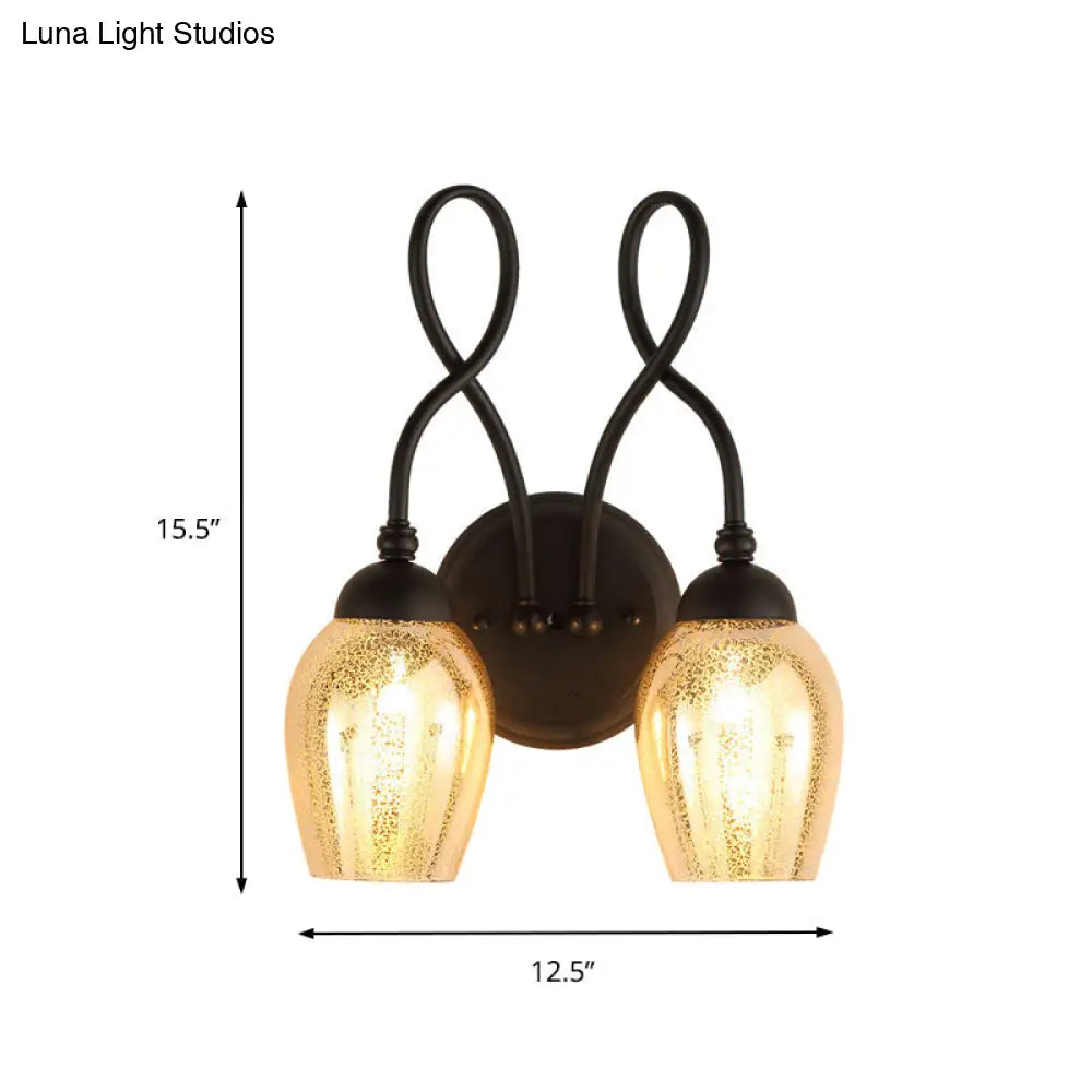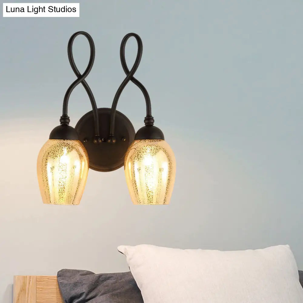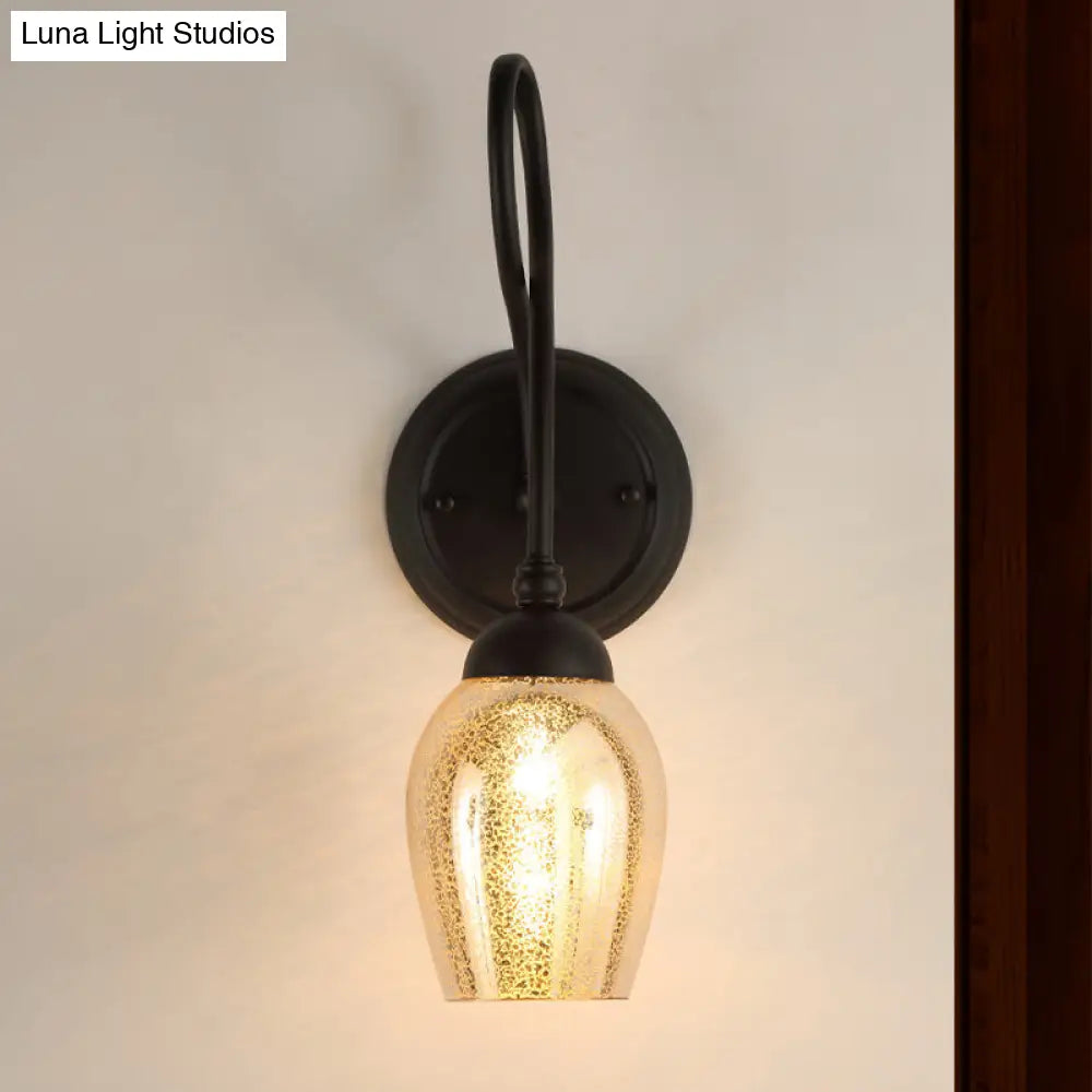 مصباح حائط زجاجي زئبقي بذراع منحني - وحدة إضاءة صناعية لغرفة النوم باللون الأسود