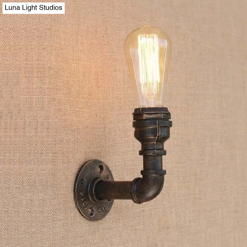مصباح حائط معدني منحني بتصميم صناعي ولمسة نهائية برونزية عتيقة لغرفة النوم