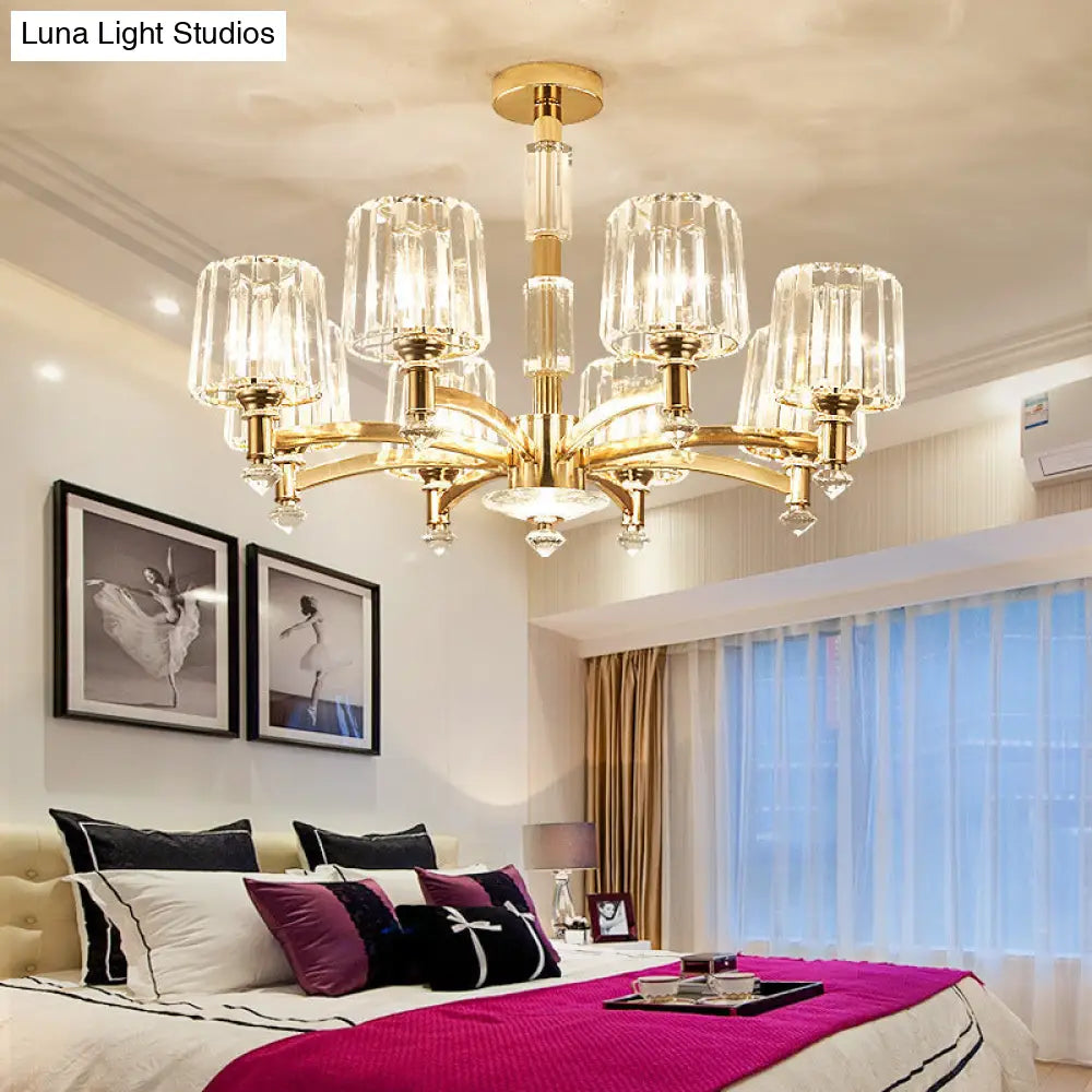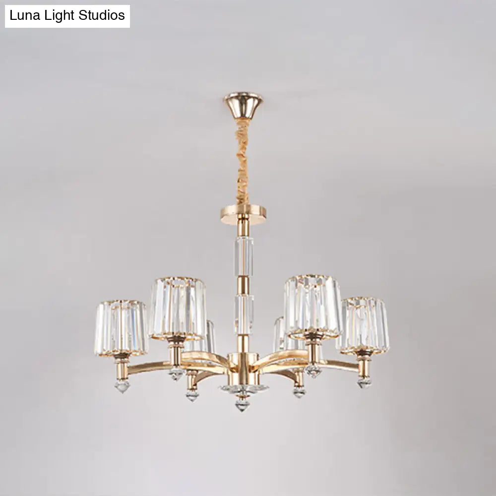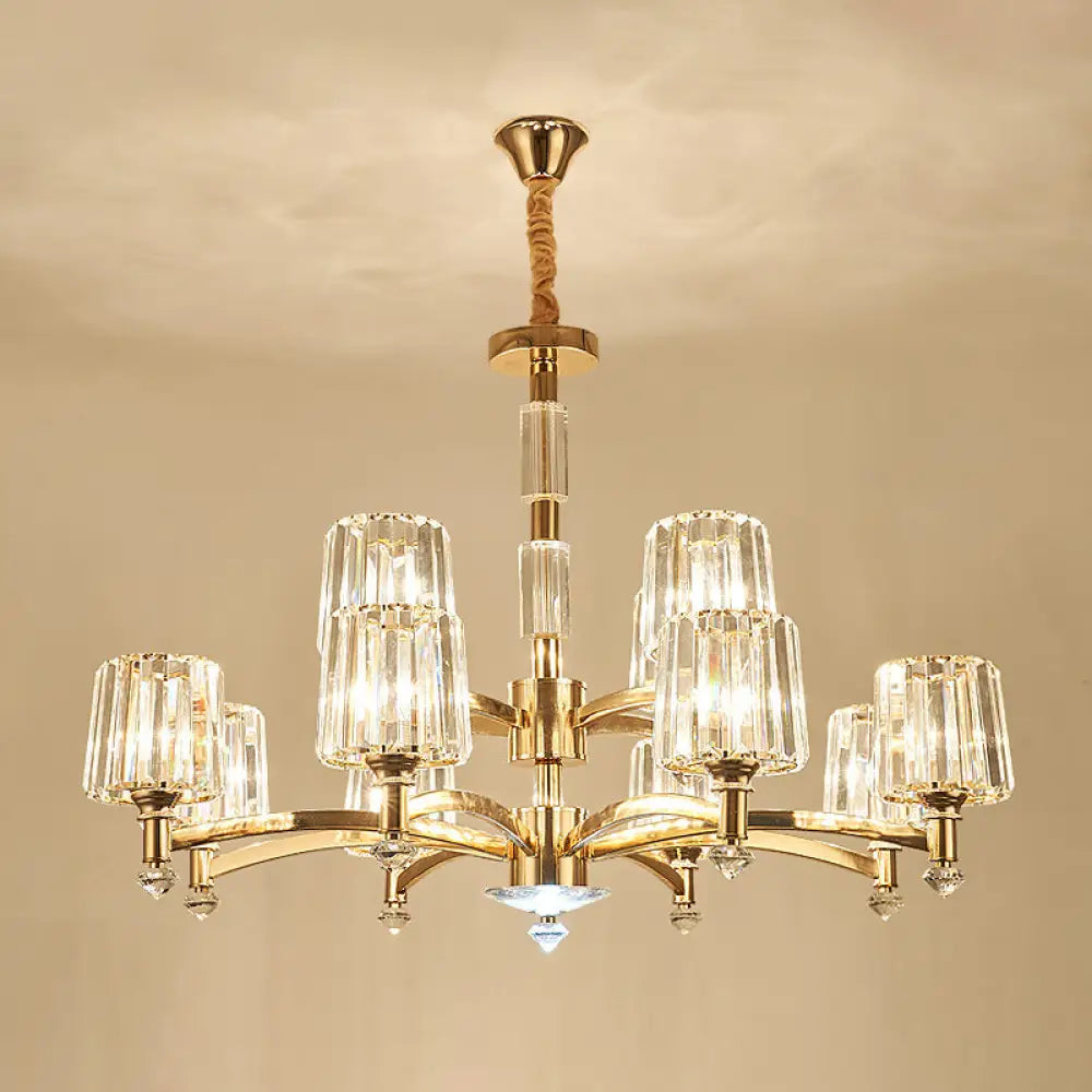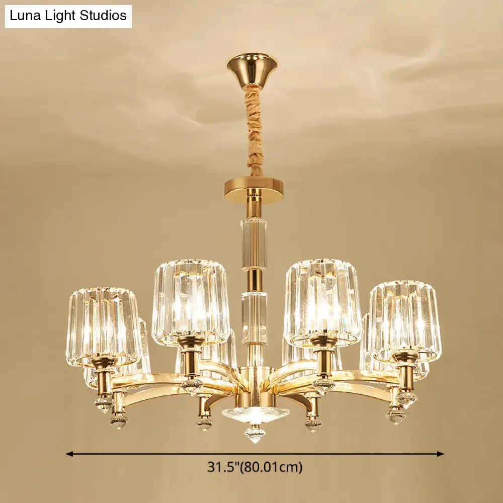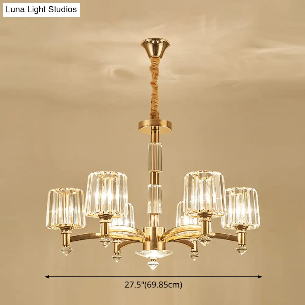 ثريا ذهبية أسطوانية الشكل مع منشور كريستالي بصري بسيط - مثالية لغرفة المعيشة