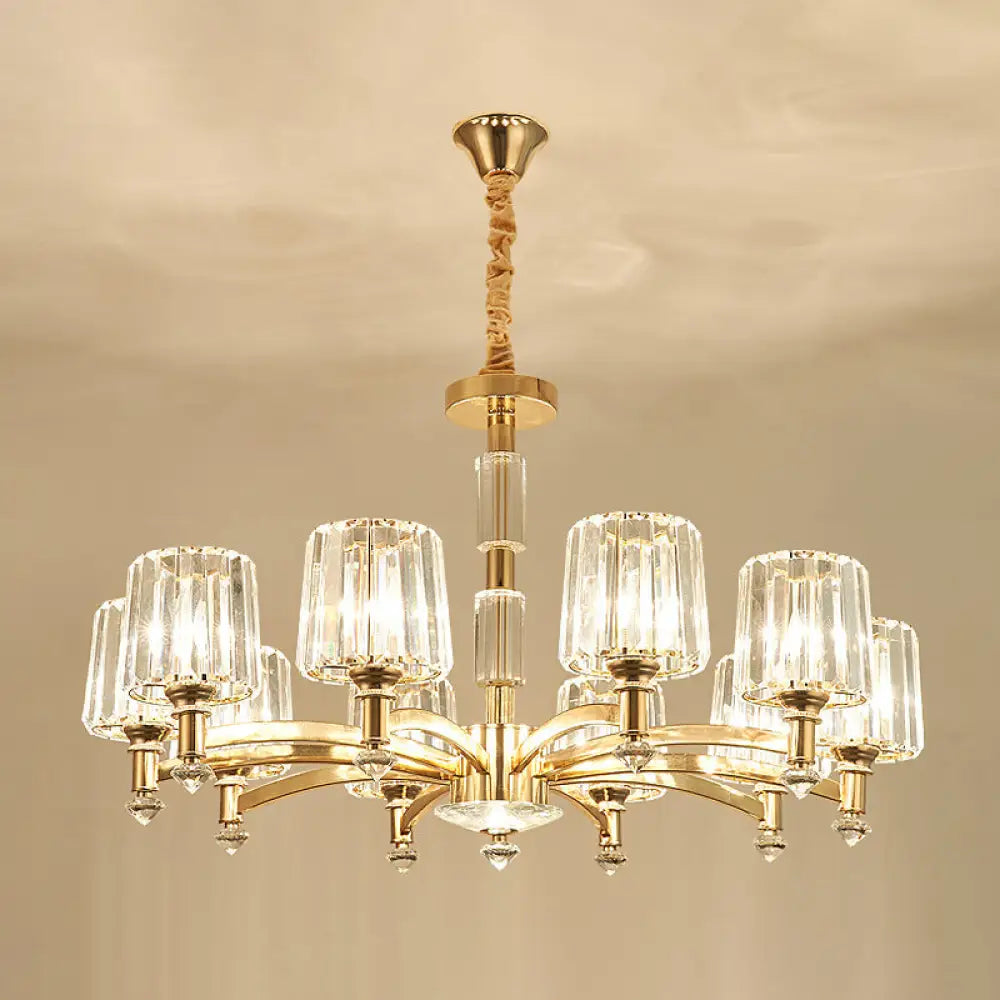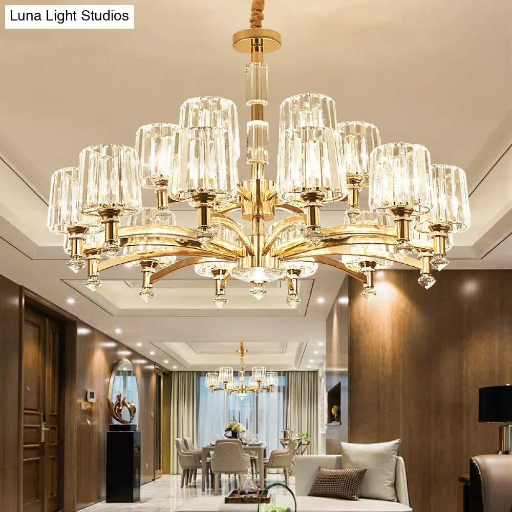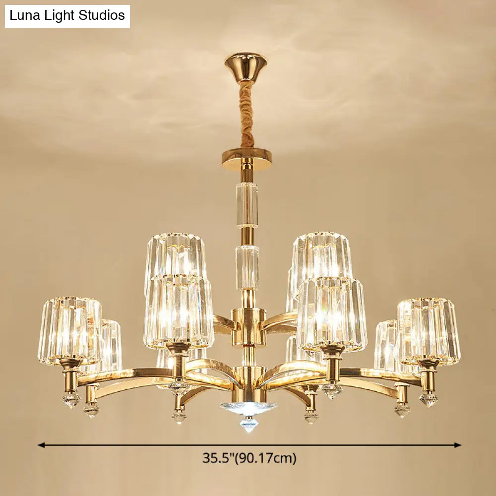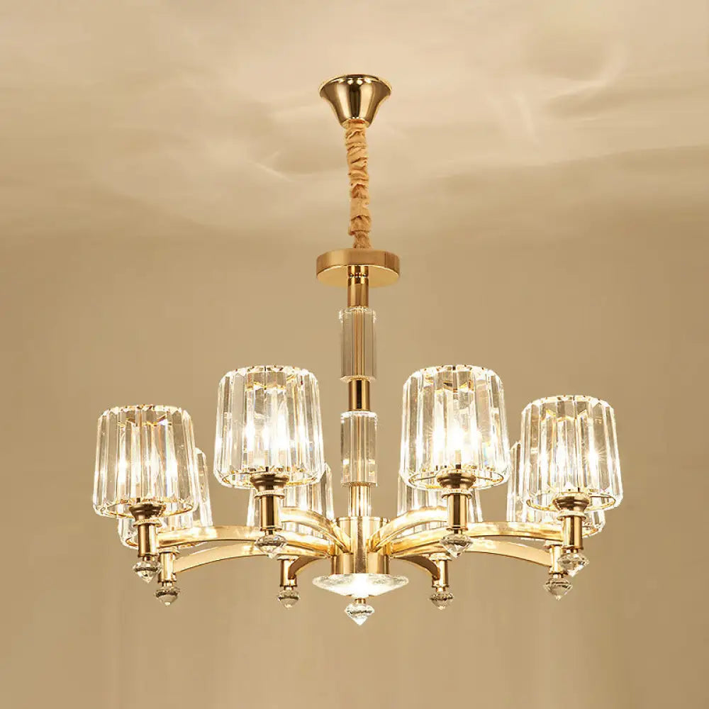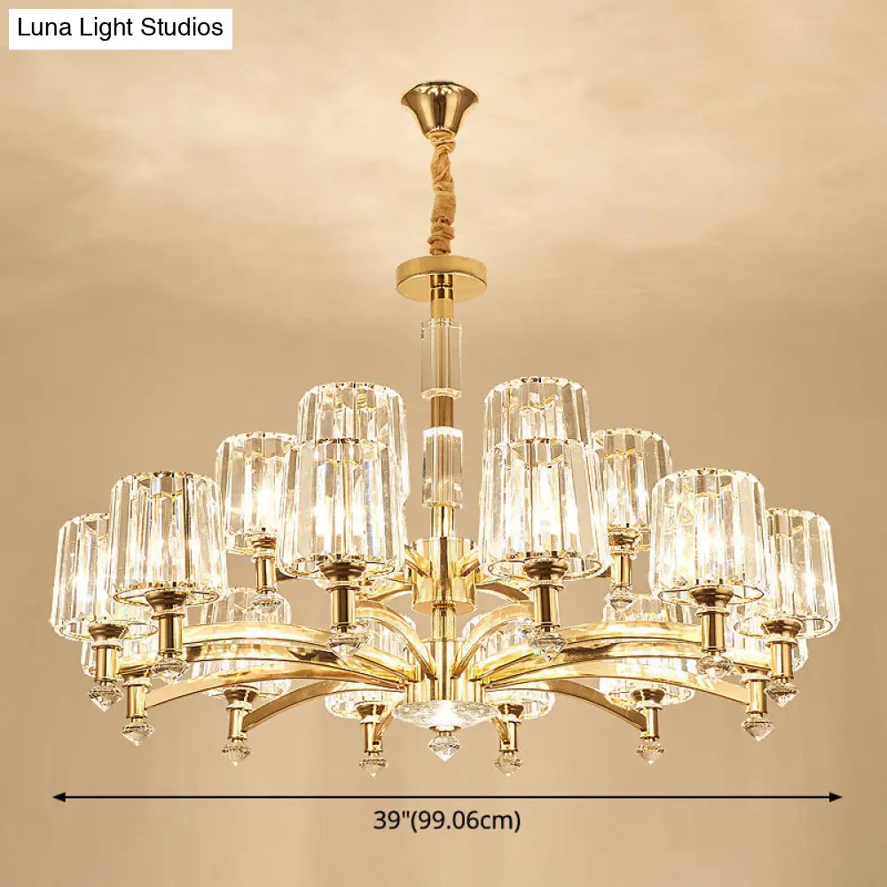 ثريا ذهبية أسطوانية الشكل مع منشور كريستالي بصري بسيط - مثالية لغرفة المعيشة