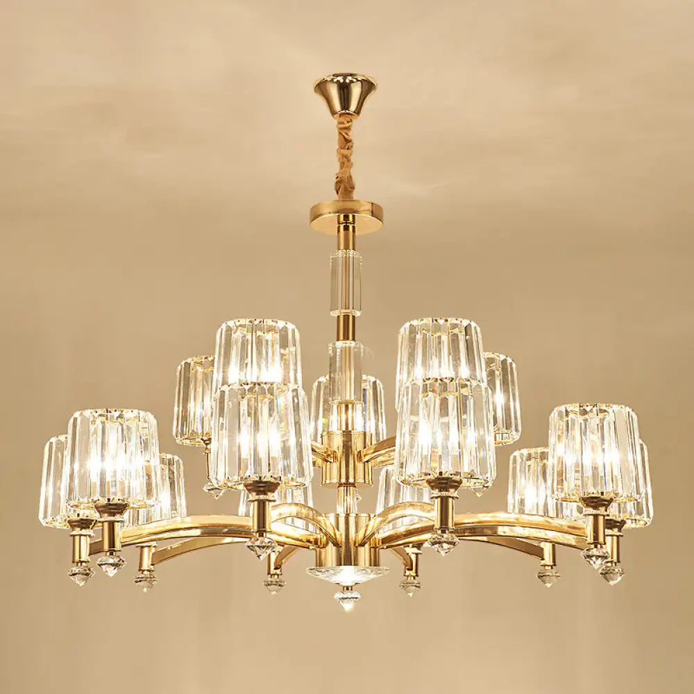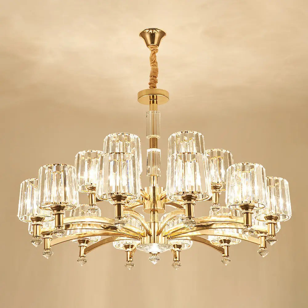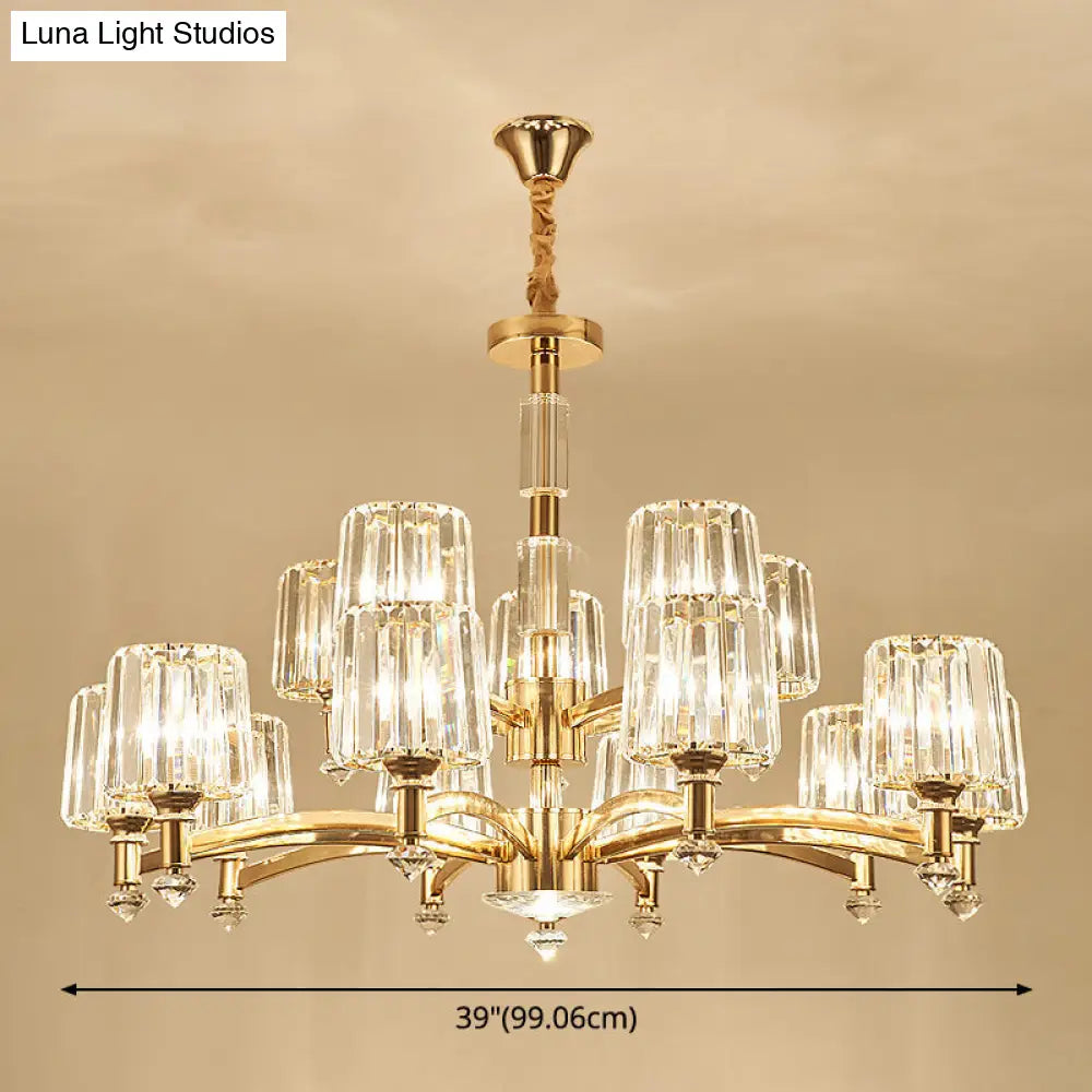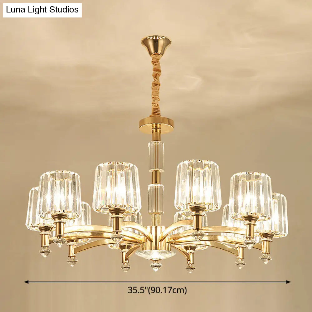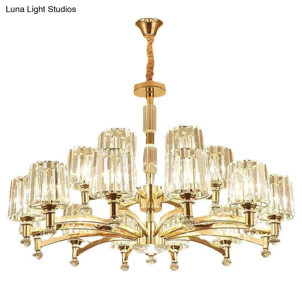 ثريا ذهبية أسطوانية الشكل مع منشور كريستالي بصري بسيط - مثالية لغرفة المعيشة