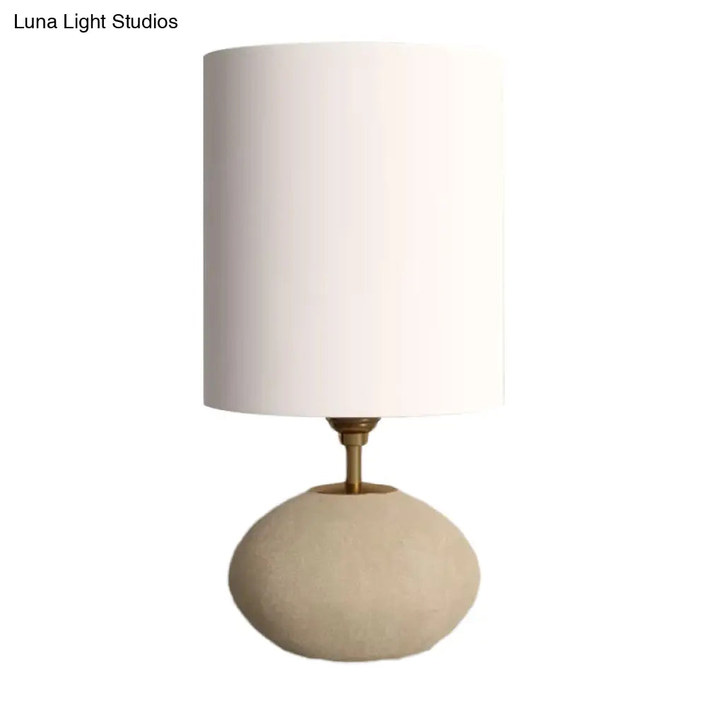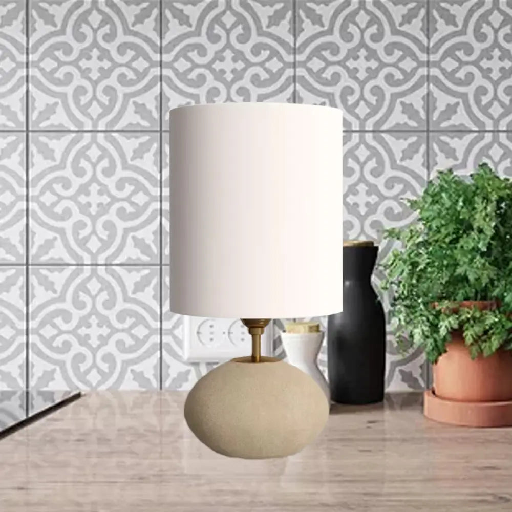مصباح طاولة من القماش الريفي بقاعدة حجرية - لمبة واحدة، لون كاكي، مناسب لطاولة غرفة المعيشة بجانب السرير