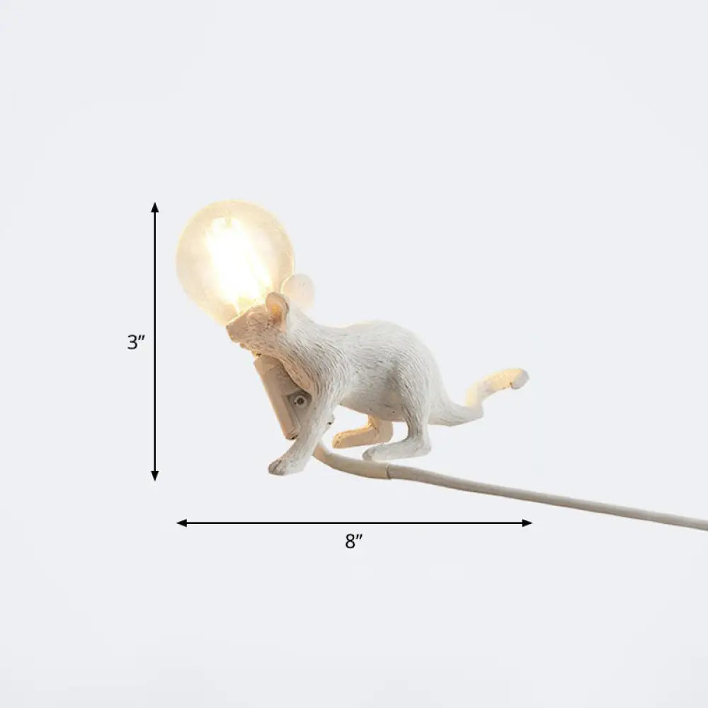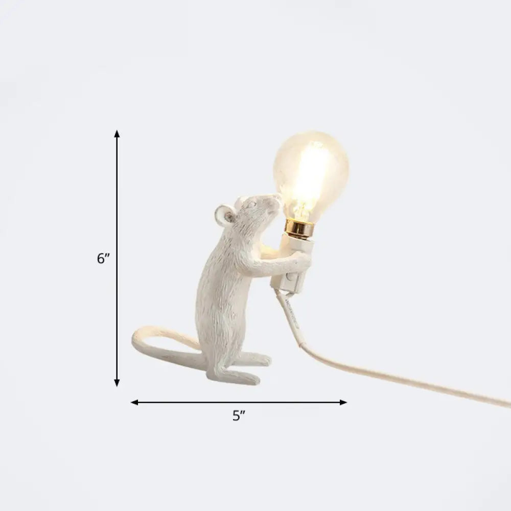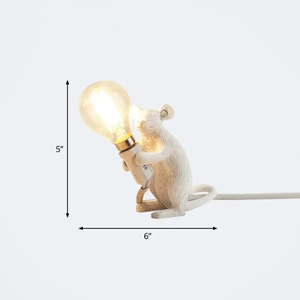 مصباح طاولة بمصباح عارٍ: مصباح ليلي بقاعدة فأر من الراتنج بضوء واحد لديكور غرفة النوم