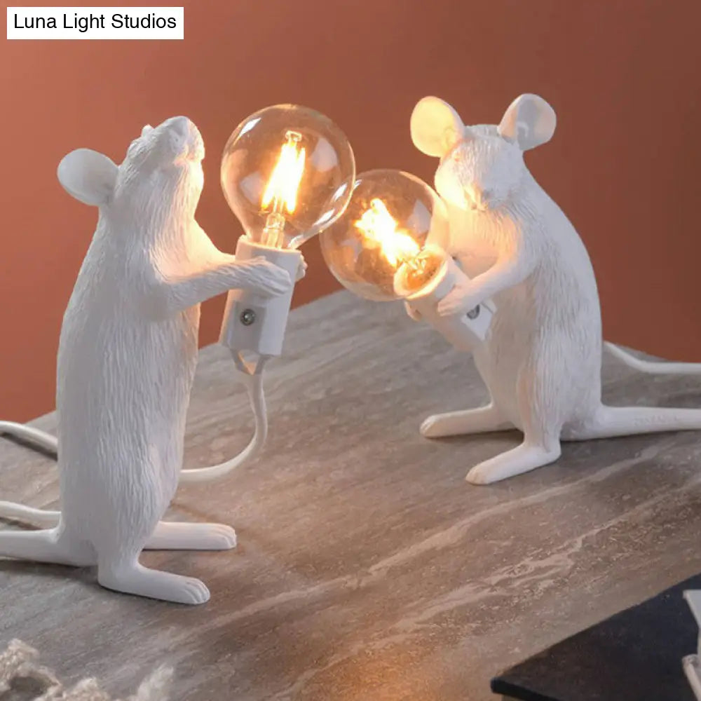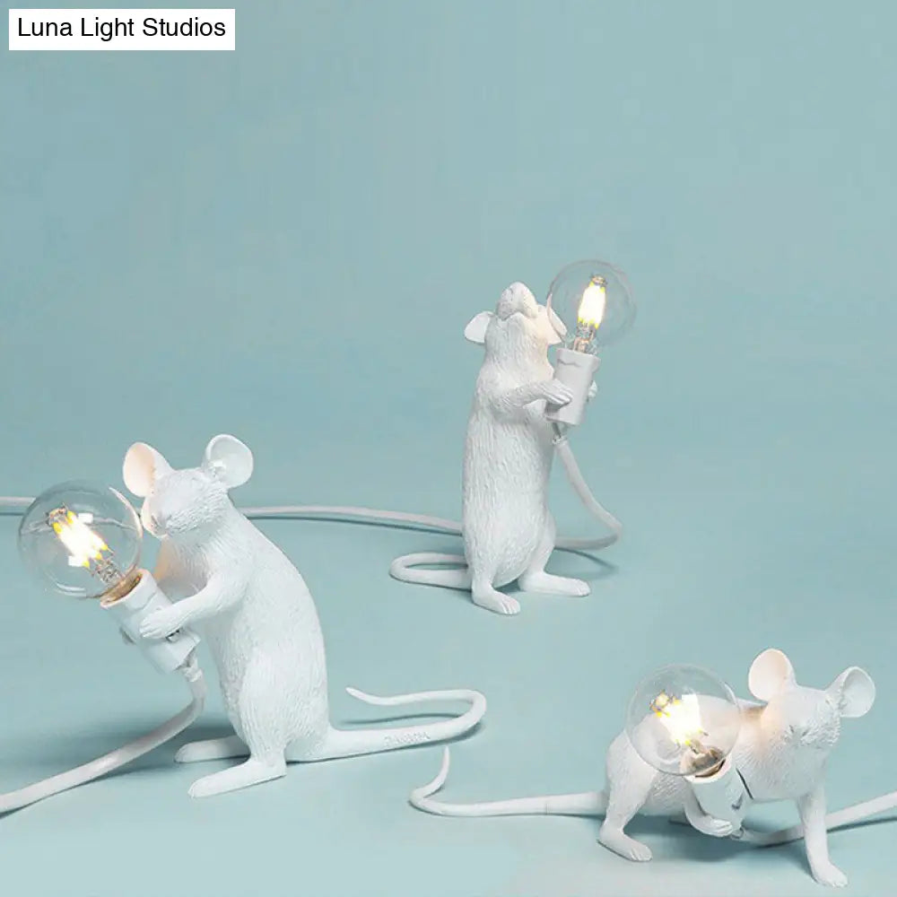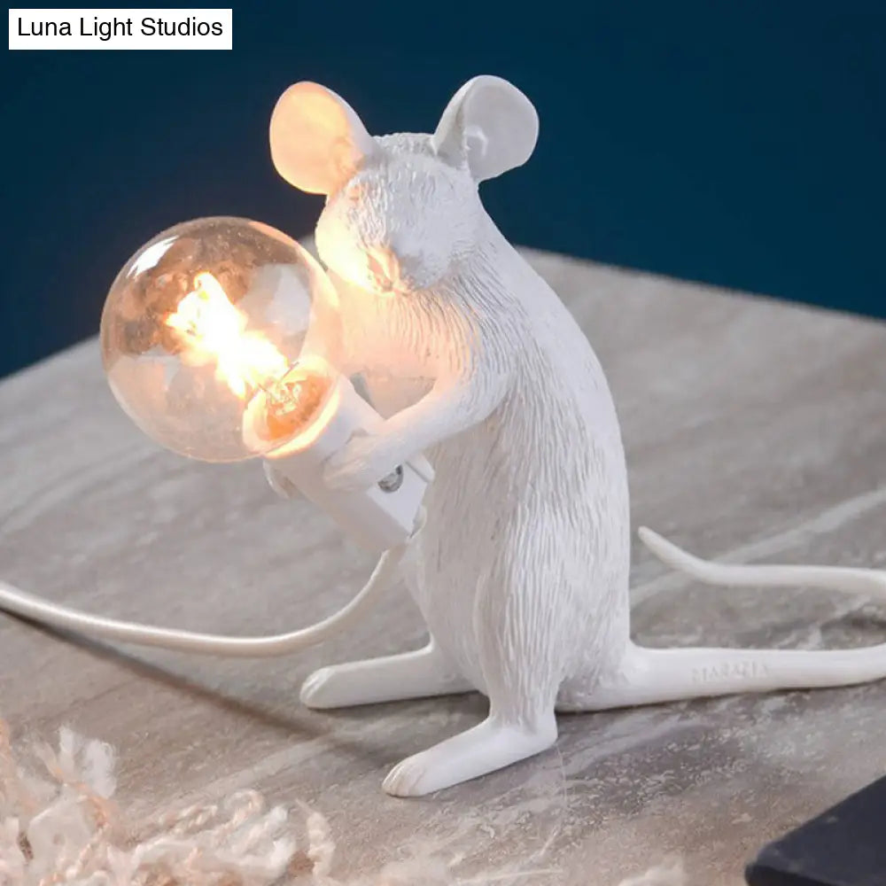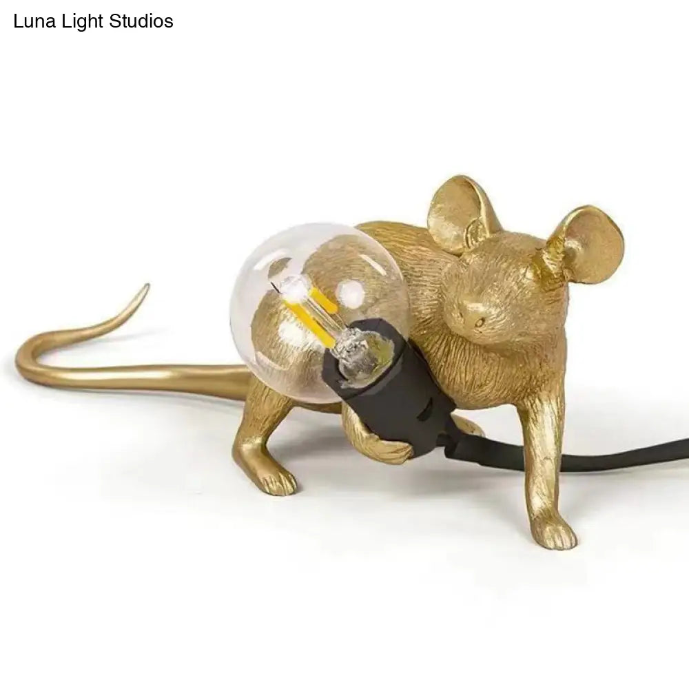 مصباح طاولة بمصباح عارٍ: مصباح ليلي بقاعدة فأر من الراتنج بضوء واحد لديكور غرفة النوم