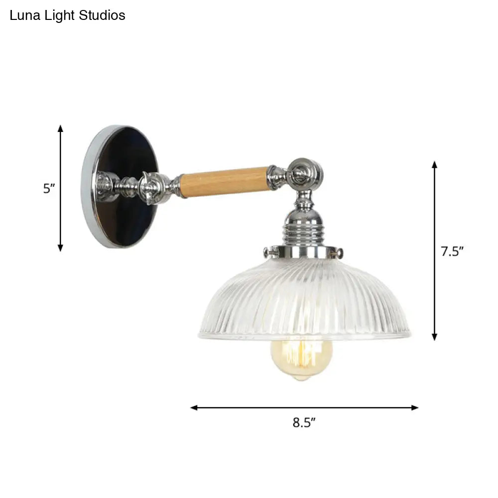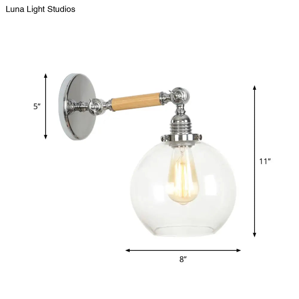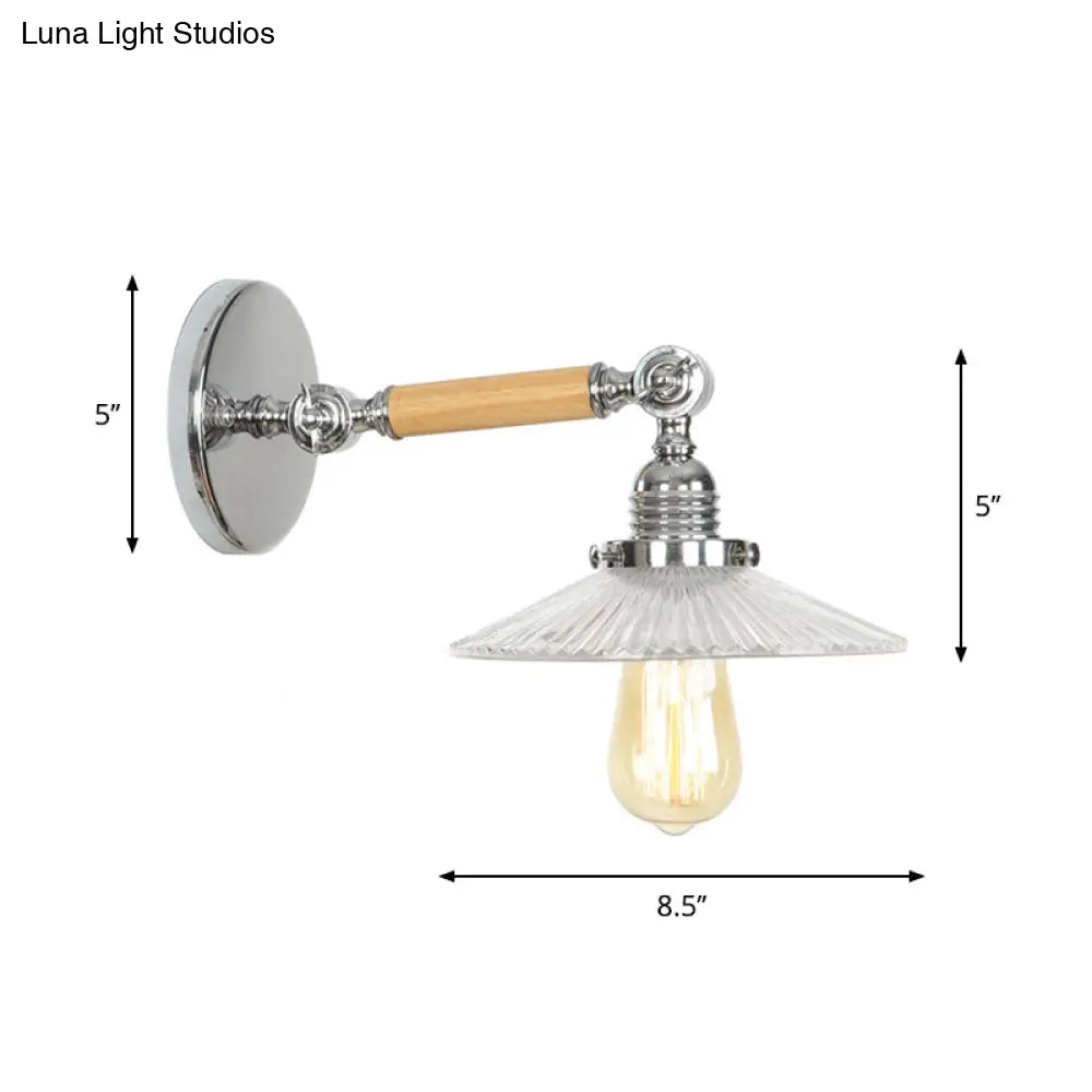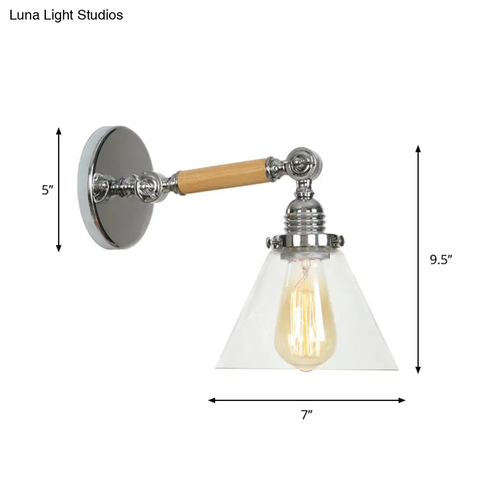 مصباح حائط ريفي من DecorBites™ مزود بمصباح واحد - تصميم وعاء/مخروط/جرس دوار من الزجاج الشفاف، مصنوع من الكروم والخشب
