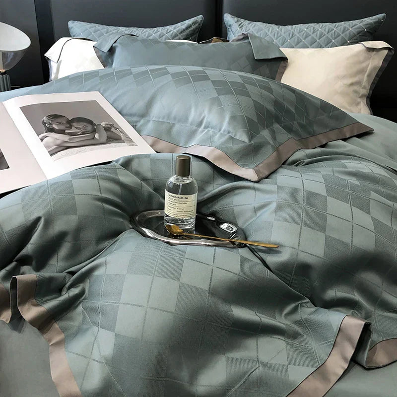 طقم غطاء لحاف من قماش الجاكار من القطن المصري DecorBites™ 1000TC: مجموعة أغطية سرير فاخرة من الساتان والحرير