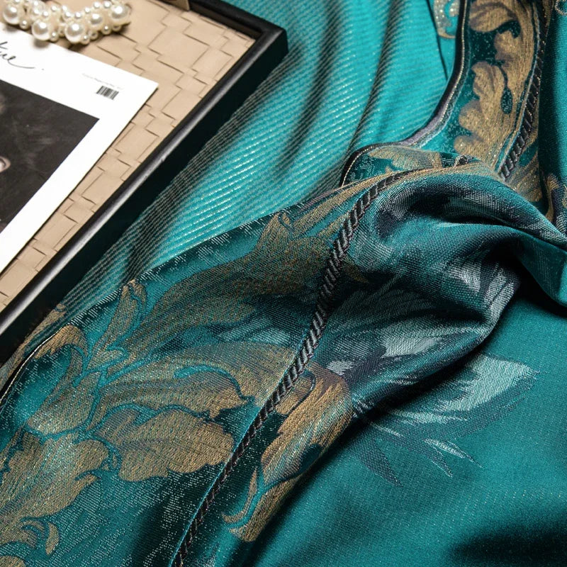 صُمم طقم أغطية اللحاف هذا لأصحاب الذوق الرفيع، ويتضمن غطاءي وسادة وملاءة واحدة، جميعها بتصميم جاكار كلاسيكي. تضفي النقوش الغنية والمعقدة لمسة من الفخامة، مثالية لإضفاء لمسة من الأناقة على ديكور غرفة نومك.