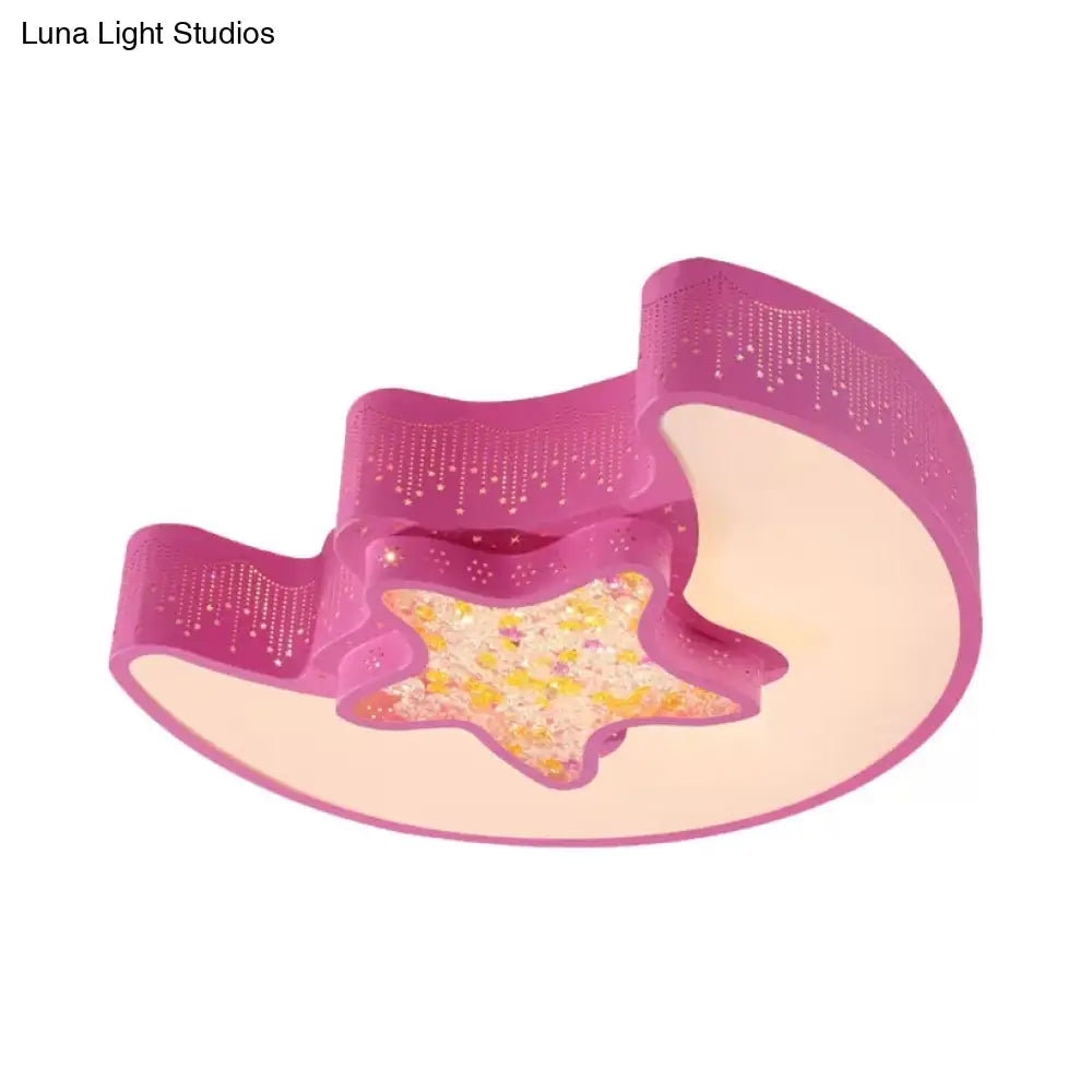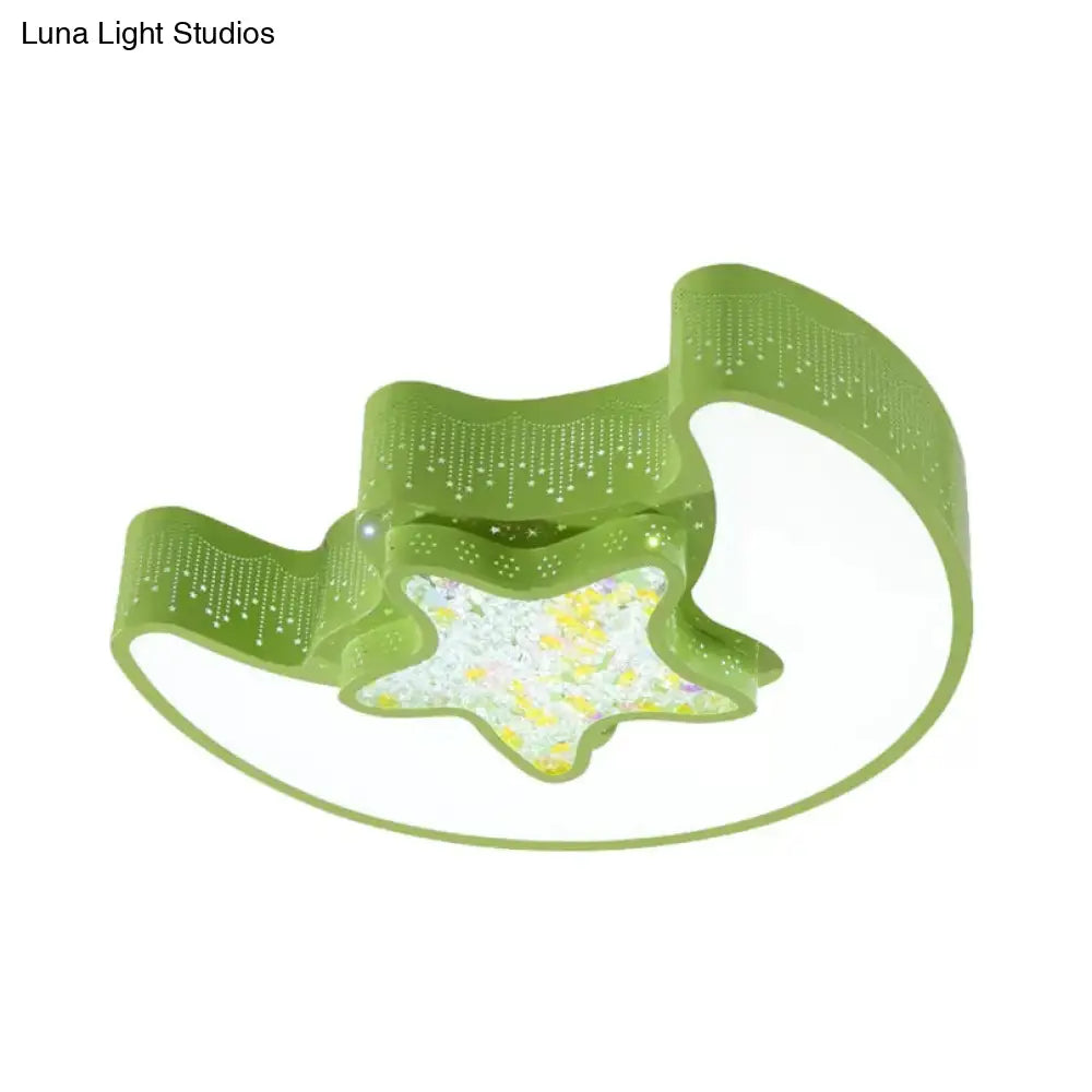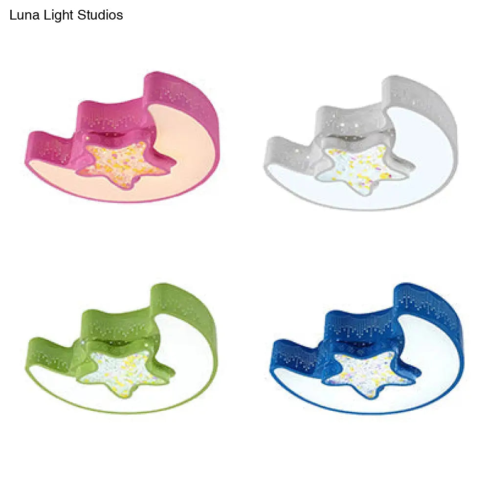 ديكوربايتس™ مصباح LED مدمج على شكل نجمة وقمر ماكارون، مقاس 18 بوصة/21.5 بوصة، إضاءة سقف معدنية بدرجات اللون الأبيض/الوردي/الأزرق/الأخضر - مثالي لمرحلة رياض الأطفال، المرحلة الثالثة/الضوء الأبيض