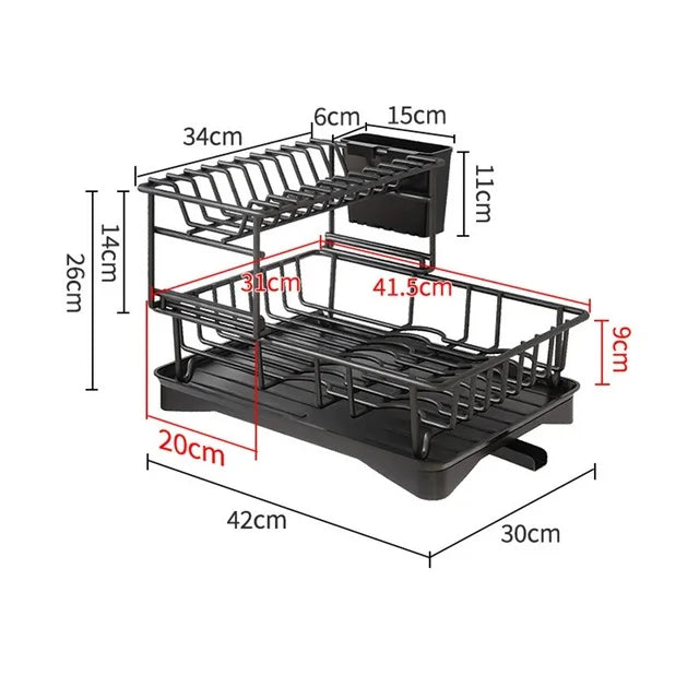 مع طبقتين من التخزين، يوفر رف تجفيف الأطباق هذا مساحة واسعة لتجفيف الأطباق والأواني وغيرها. وداعًا لفوضى أسطح العمل، ورحّب بمطبخ منظم وفعّال. يُعد رف تجفيف الأطباق ذو الطبقتين الإضافة المثالية لأي مطبخ عصري، إذ يوفر حلاً عمليًا للتخزين مع الحفاظ على أناقته.