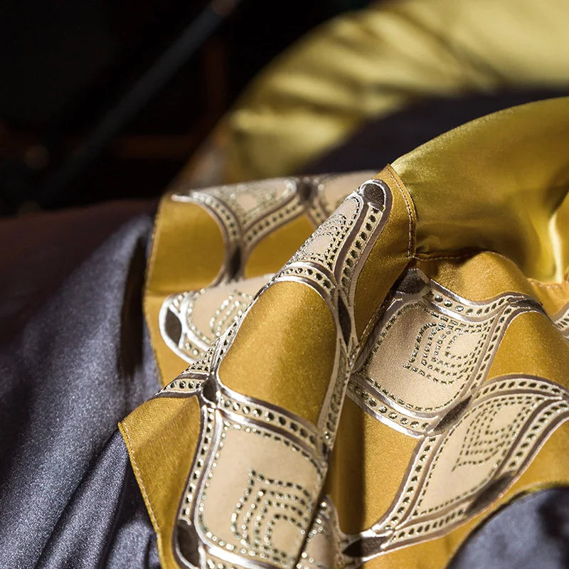 بفضل عدد خيوطه العالي الذي يصل إلى 1200 خيط، يوفر طقم الفراش هذا ملمسًا فاخرًا بجودة فندقية لا مثيل لها. تضفي تفاصيل التطريز الدقيقة لمسة من الرقي، مما يجعله قطعة مميزة في أي غرفة نوم. يضمن نمط القماش المصبوغ بالخيوط المتانة والجمال طويل الأمد.