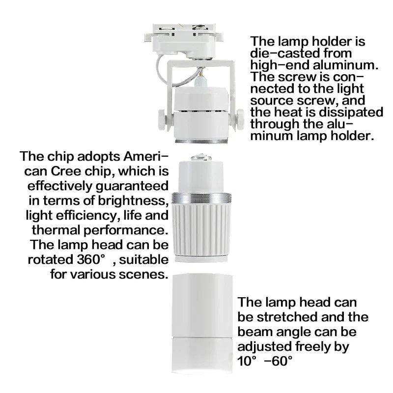 كشاف LED قابل للتعتيم من DecorBites™ بقوة 25 واط: زاوية شعاع قابلة للتعديل، وإضاءة مسار عالية الجودة