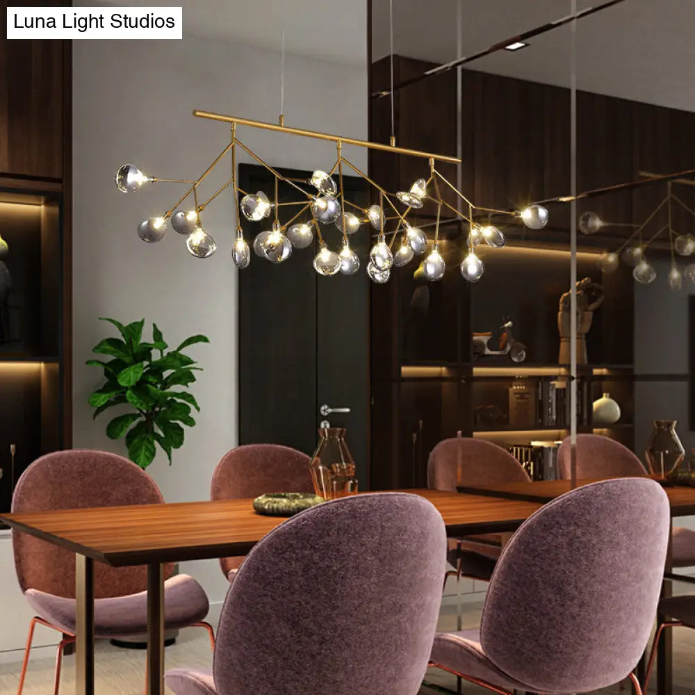 ديكوربايتس™ مصباح معلق بـ 27 لمبة جزيرة بلمسة نهائية من النحاس مع غطاء زجاجي - تصميم فرع بسيط