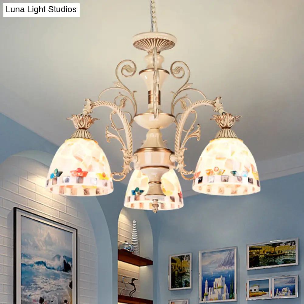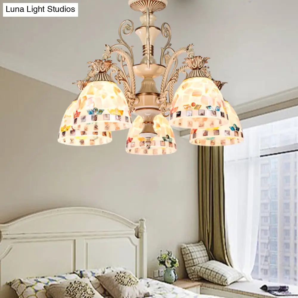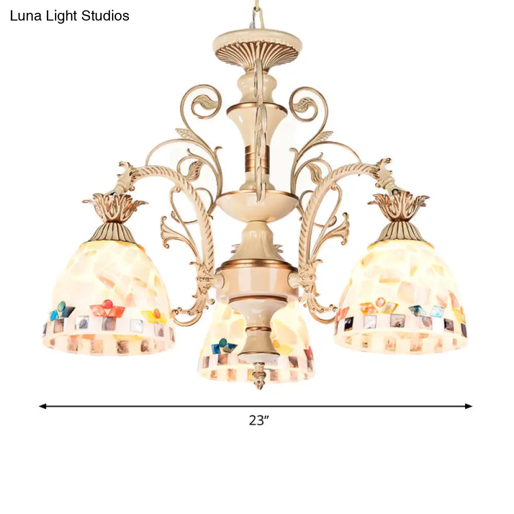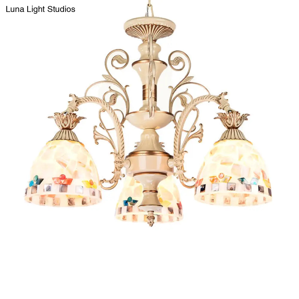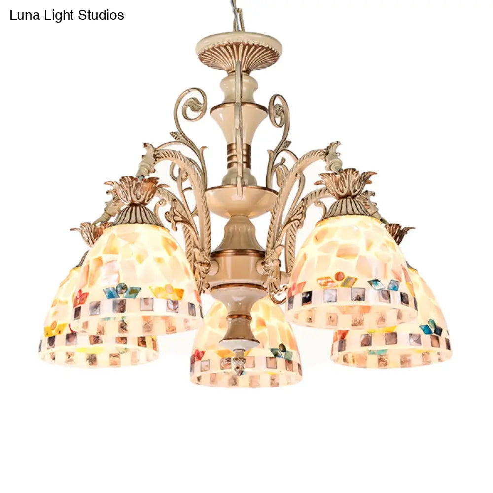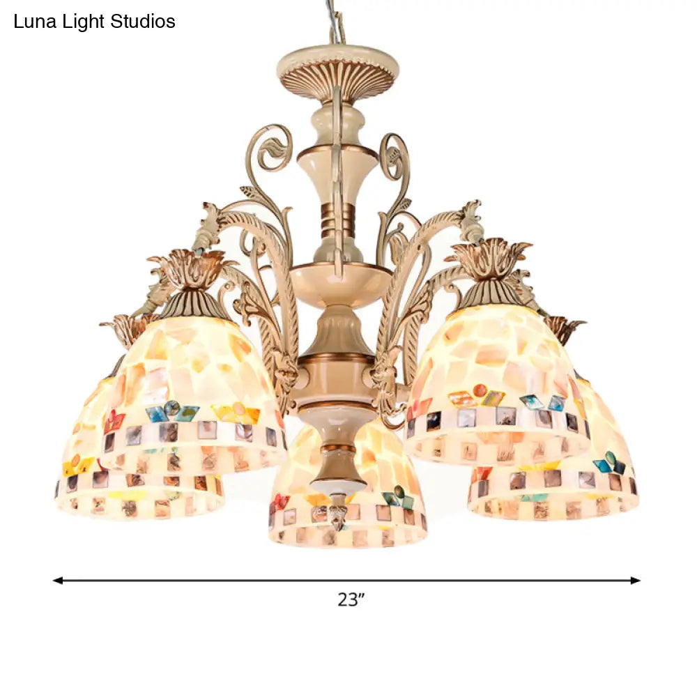 ثريا DecorBites™ بثلاثة مصابيح وخمسة مصابيح - طقم مصباح معلق من الفسيفساء الزجاجي الملون باللونين الأبيض والذهبي على طراز تيفاني