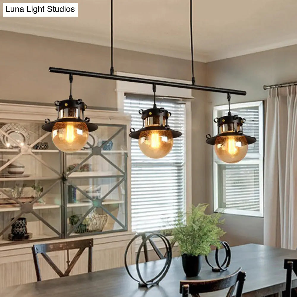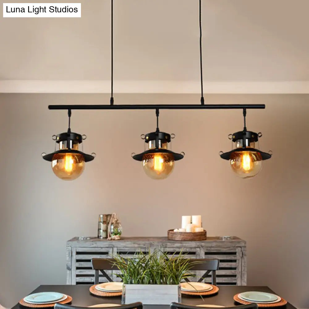 ديكوربايتس™ - مصباح معلق خطي بثلاث مصابيح على شكل جزيرة - مصباح معدني أسود تقليدي مع غطاء متسع